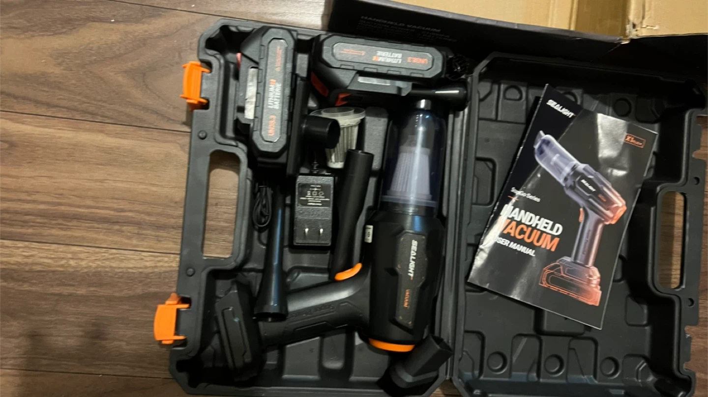 BRAND NEW NEVER USED This SEALIGHT X1plus+ handheld vacuum comes with two batteries. It's a cordless, brushless model for convenient cleaning. Includes original case and manual. Comes with charger for battery’s