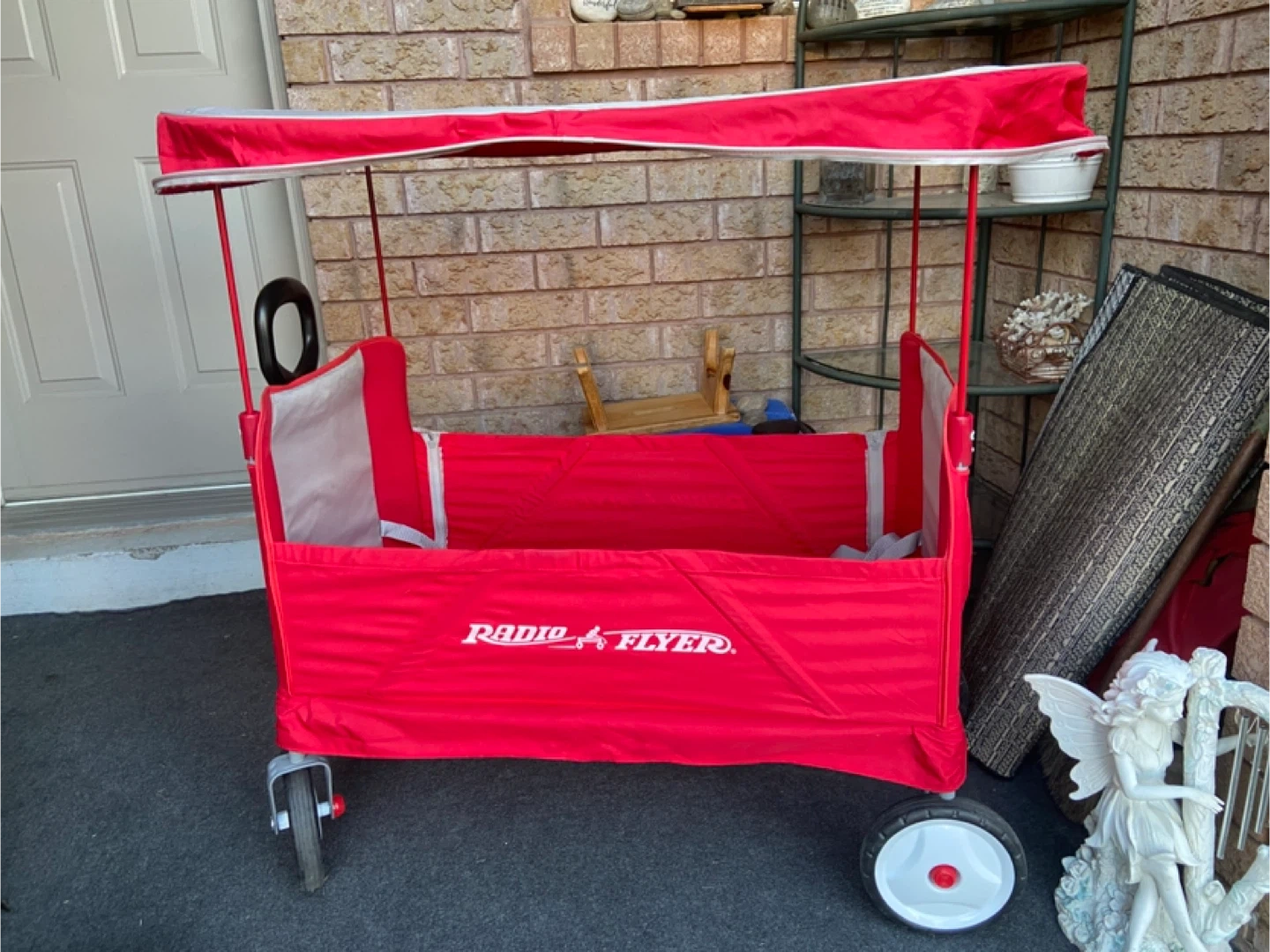 Selling a Radio Flyer convertible stroller wagon in super great condition! This wagon is perfect for hauling kids and cargo, and the convertible design makes it easy to switch between stroller and wagon modes. It's red and grey. Solid wheels, easy Swivel front wheels and sturdy pull handle.