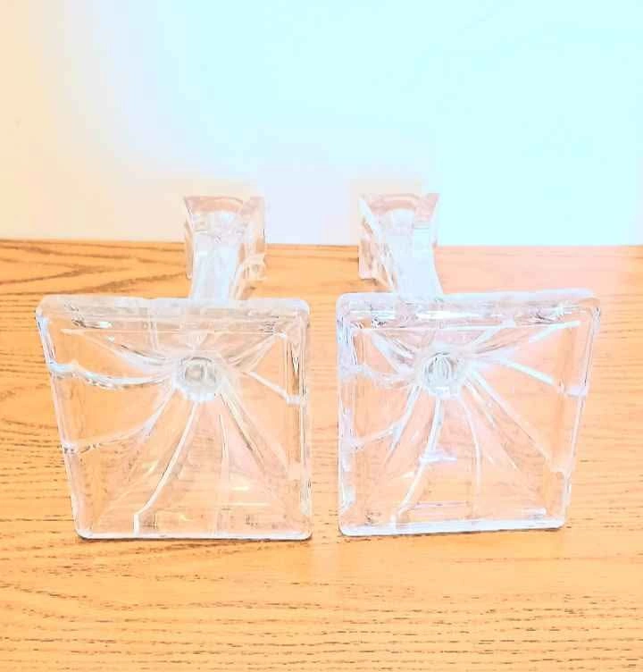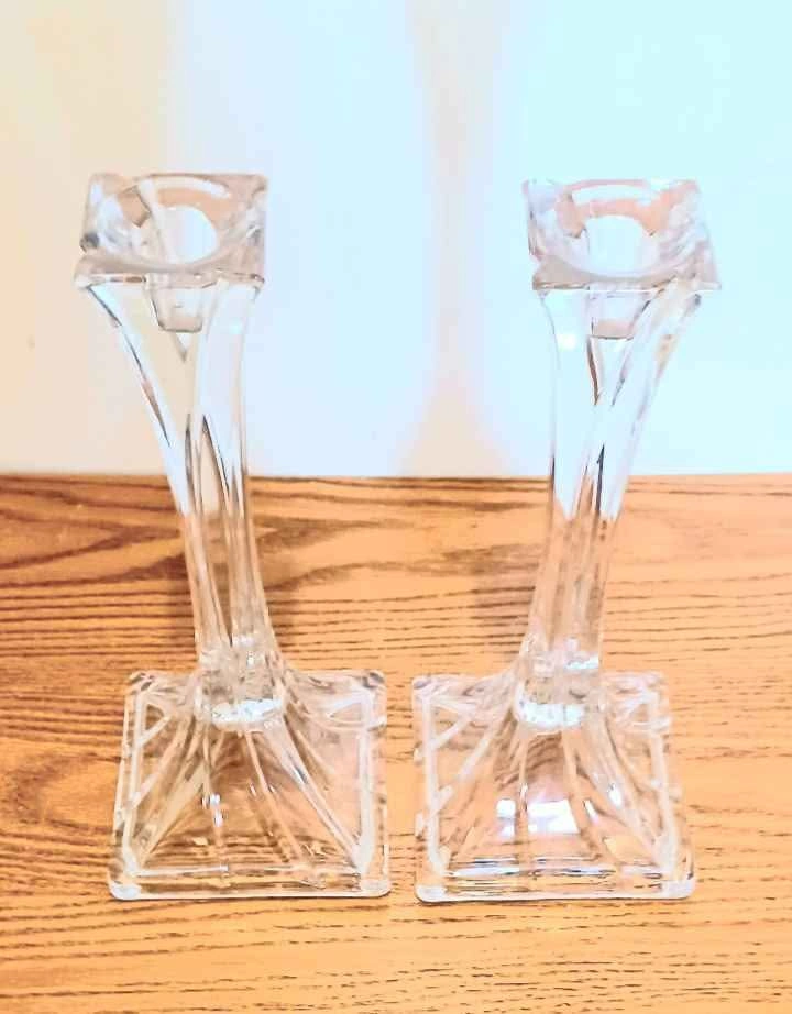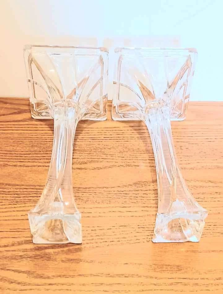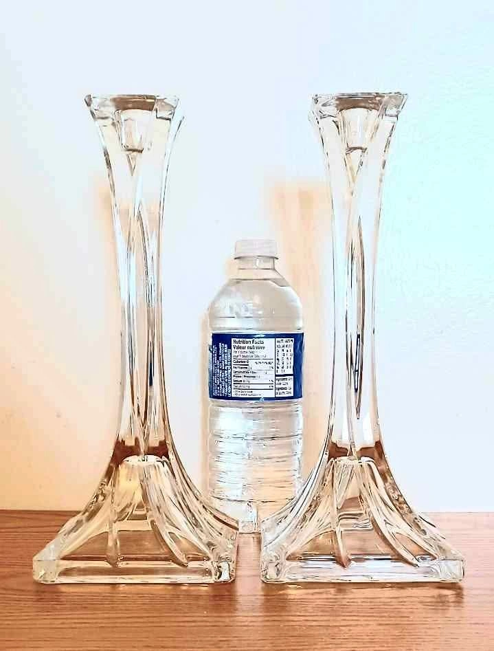 Vtg. Hollywood Regency Tall Crystal Candle Holders