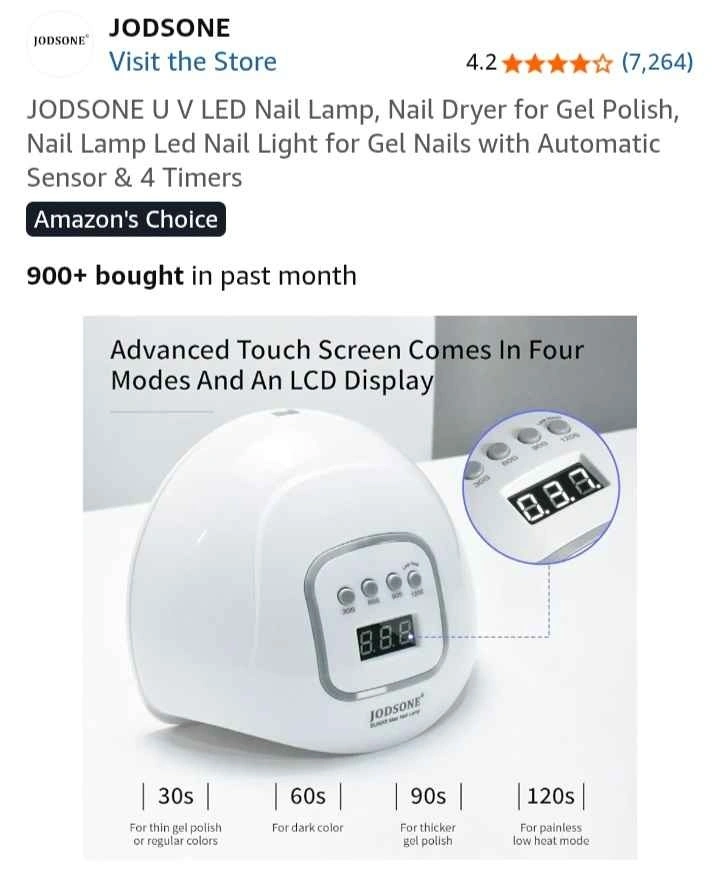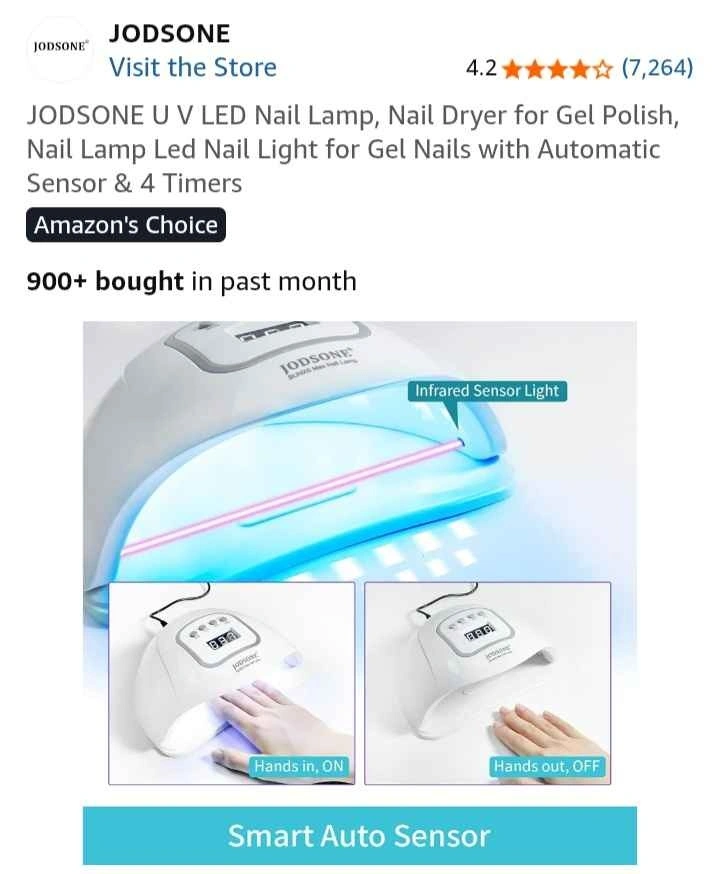 JODSONE U V LED Nail Lamp, Nail Dryer for Gel Polish, Nail Lamp Led Nail Light for Gel Nails with Automatic Sensor & 4 Timers