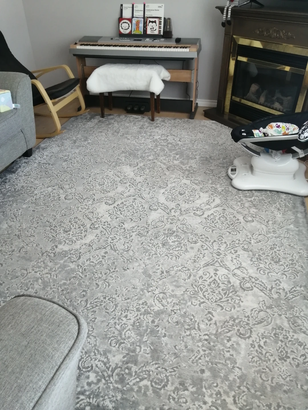 Selling a nice area rug with a grey patterned design. It would look great in any living room or bedroom. It's in good condition and ready for a new home!