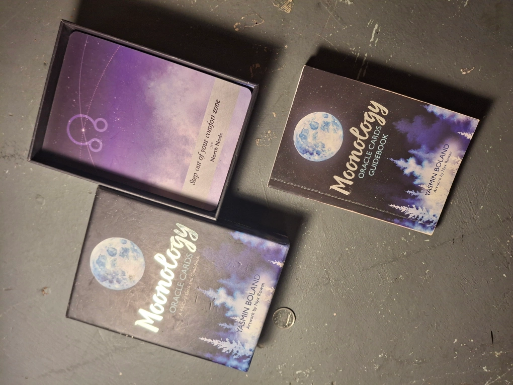Selling a complete set of Moonology Oracle Cards by Yasmin Boland! This 44-card deck and guidebook is perfect for anyone interested in exploring the moon's influence and guidance in their life. The cards are in great condition and come with the original box