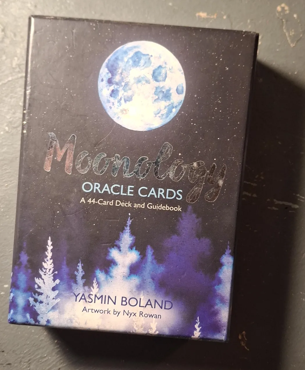 Selling a complete set of Moonology Oracle Cards by Yasmin Boland! This 44-card deck and guidebook is perfect for anyone interested in exploring the moon's influence and guidance in their life. The cards are in great condition and come with the original box