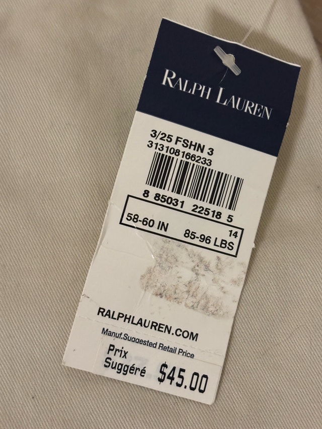 Size 14 years (the tag says 58-60 in and 85-96 lbs).