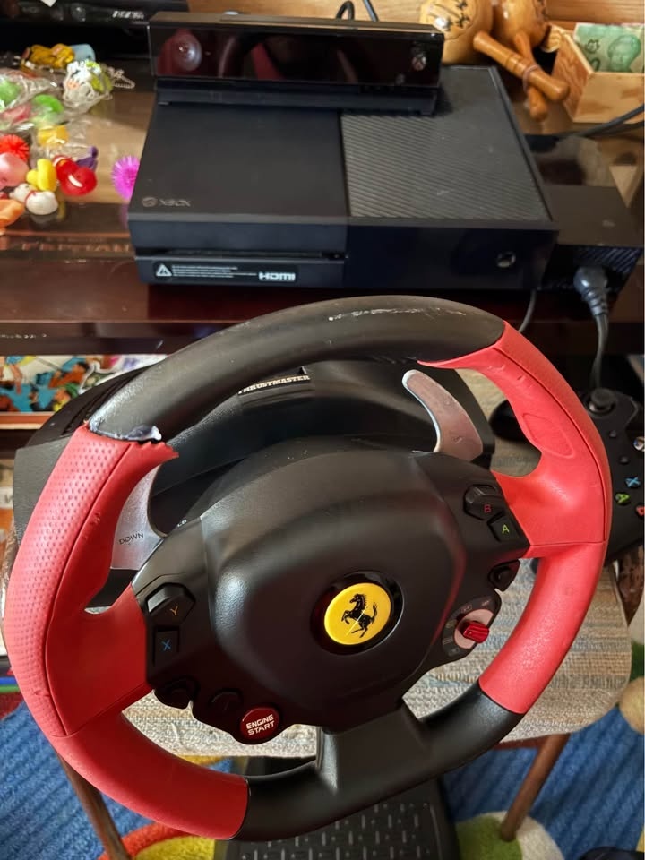 Xbox one-S w/kinect camera and ferari racingwheels and pedal