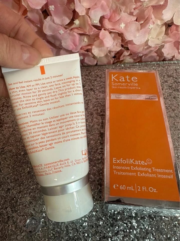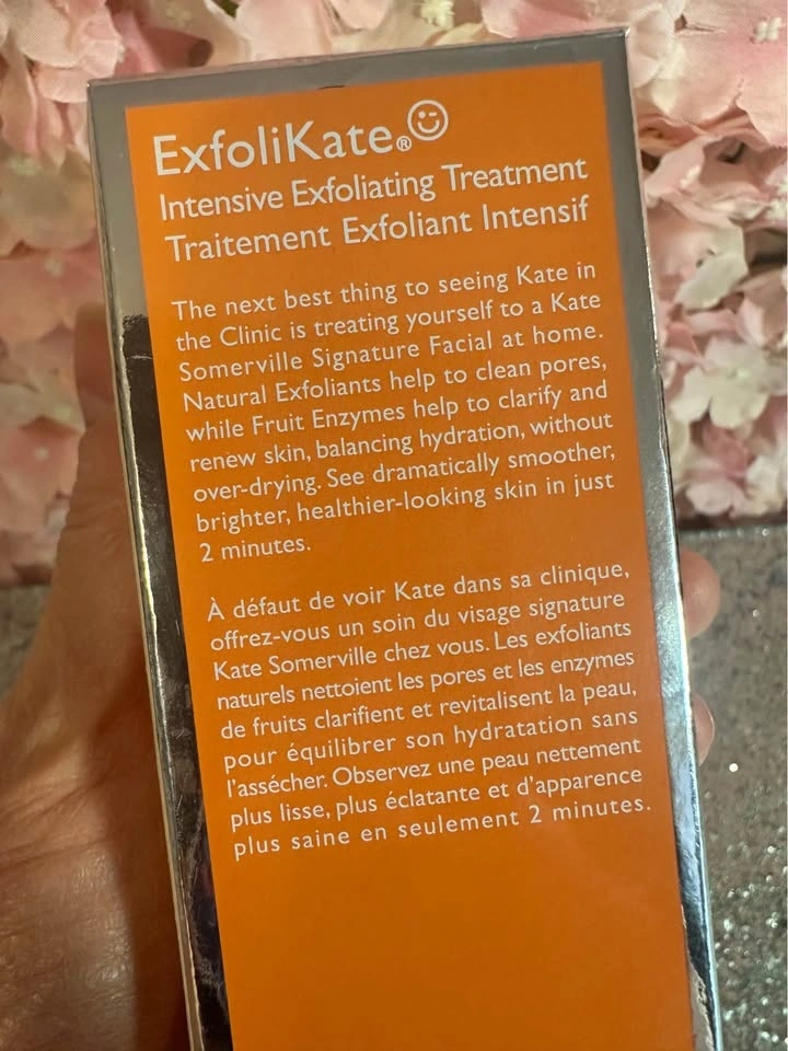 New and sealed! Kate Somerville's #1 best-selling facial treatment. Triple-action exfoliator smooths skin and improves the appearance of pores in just 2 minutes. Suitable for Normal, Dry, Combination, and Oily skin types. Addresses concerns like dullness, uneven skin tone, pores, fine lines, and wrinkles. Formulation: Scrub. Suggested Usage: Use once or twice a week AM or PM. Apply a thin, even layer to a clean, wet face, massaging in a circular motion for 30 seconds. Leave on for up to two minutes. Rinse and gently pat dry. This product may cause the skin to tingle and flush slightly for a short time. Pick up near Upper Canada Mall.