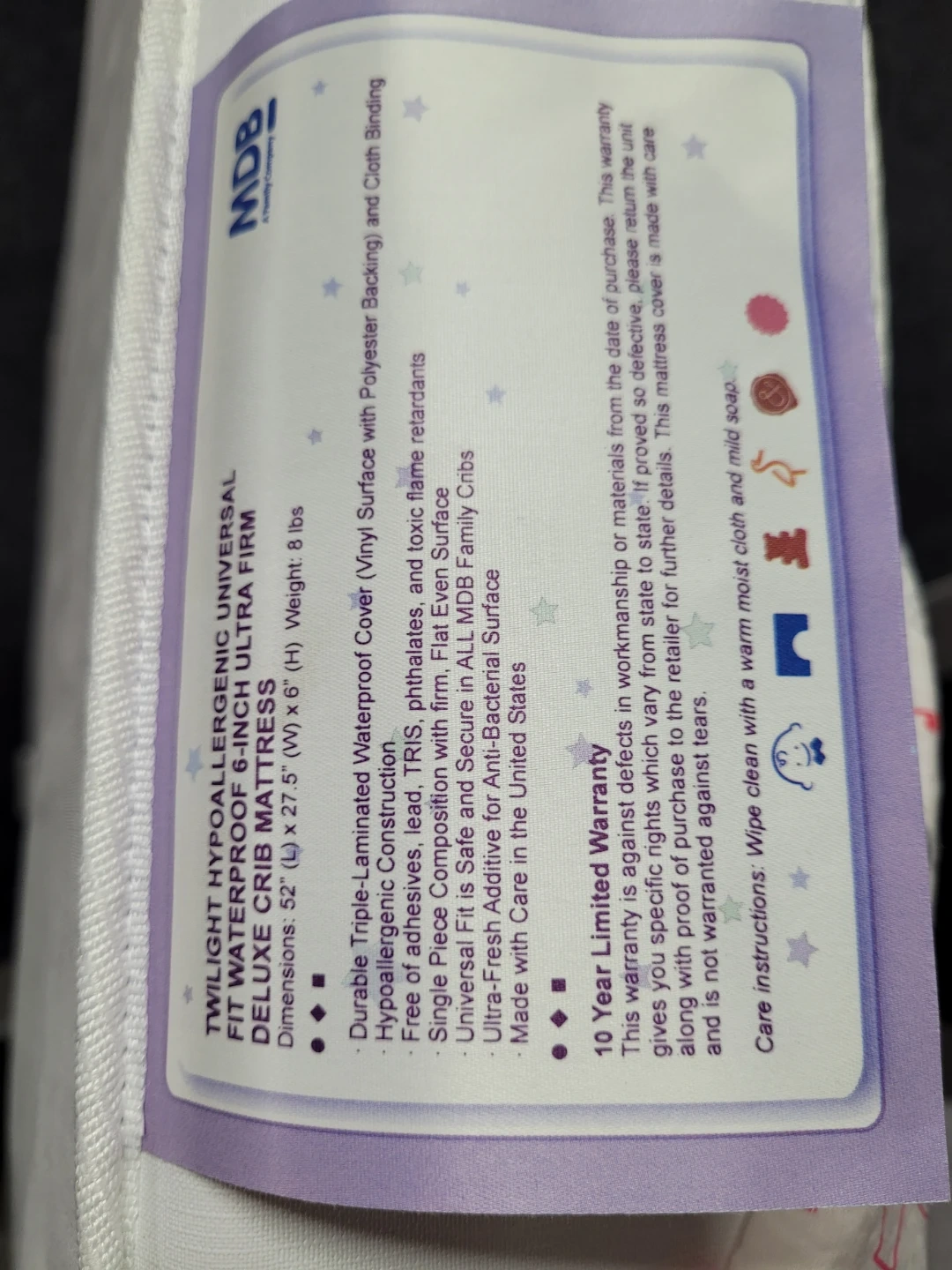 **Hypoallergenic and firm crib mattress. Small rip in top of mattress (see pic)