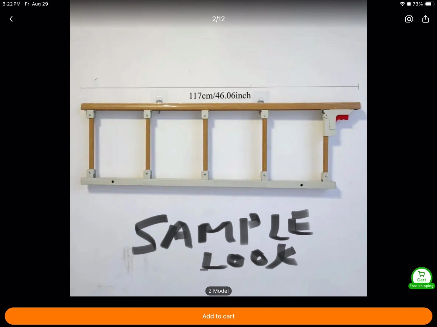 Selling a brand new bed rail! It's white and measures about 46 inches (117cm) in length. It's still in its original packaging, so it's in perfect condition