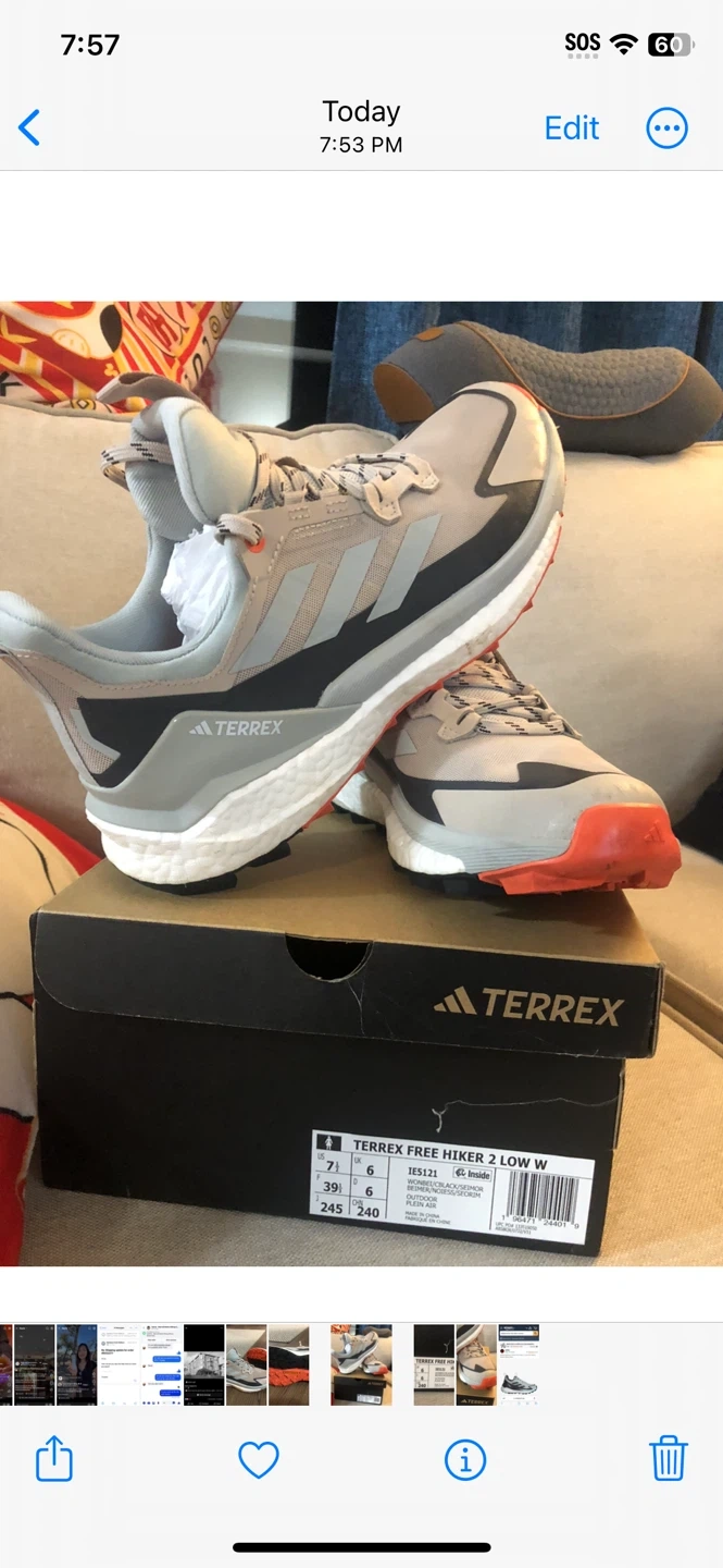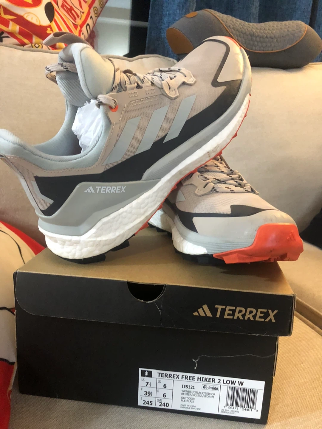 Adidas Terrex Free Hiker 2 Low W hiking shoes in beige and black. Women's US size 7.5, UK 6, EU 39.5. Includes original box.like new used once hiking a little big , only a few small scratches in front , paid over $150 sell for $70 firm thanks.