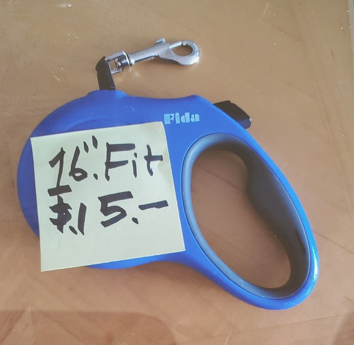 I'm selling a Fida retractable dog leash, it extends to 16 feet! Great for giving your furry friend some extra roaming space on walks. It's in great condition and ready for a new home.