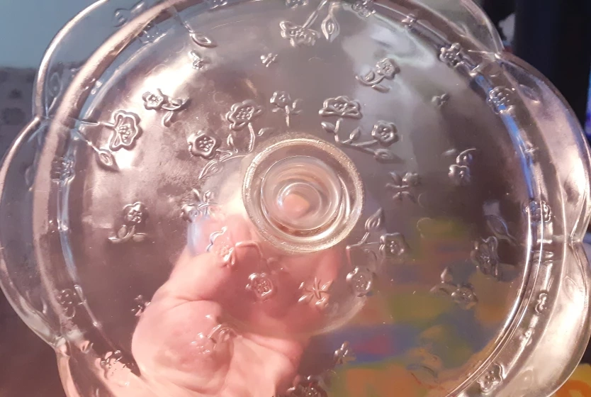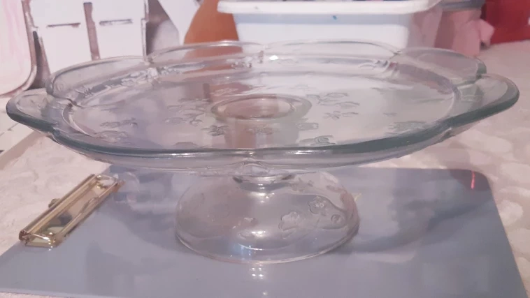 Glass Cake Stand with Floral Design
