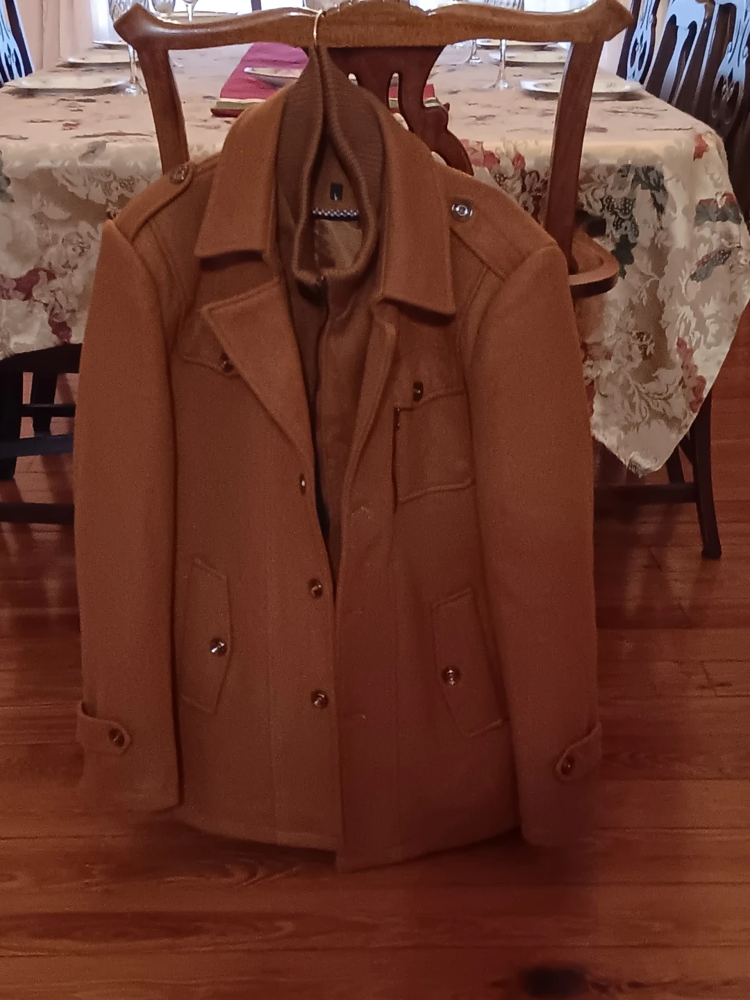Selling a stylish men's brown wool jacket. New never worn. It's in great condition and perfect for the colder weather. The coat features a classic design with button closures ,zipper and functional pockets. A great addition to any wardrobe! Fits medium approximately 185 pounds