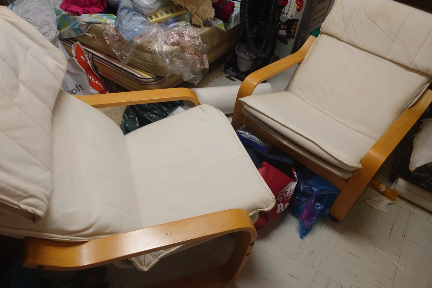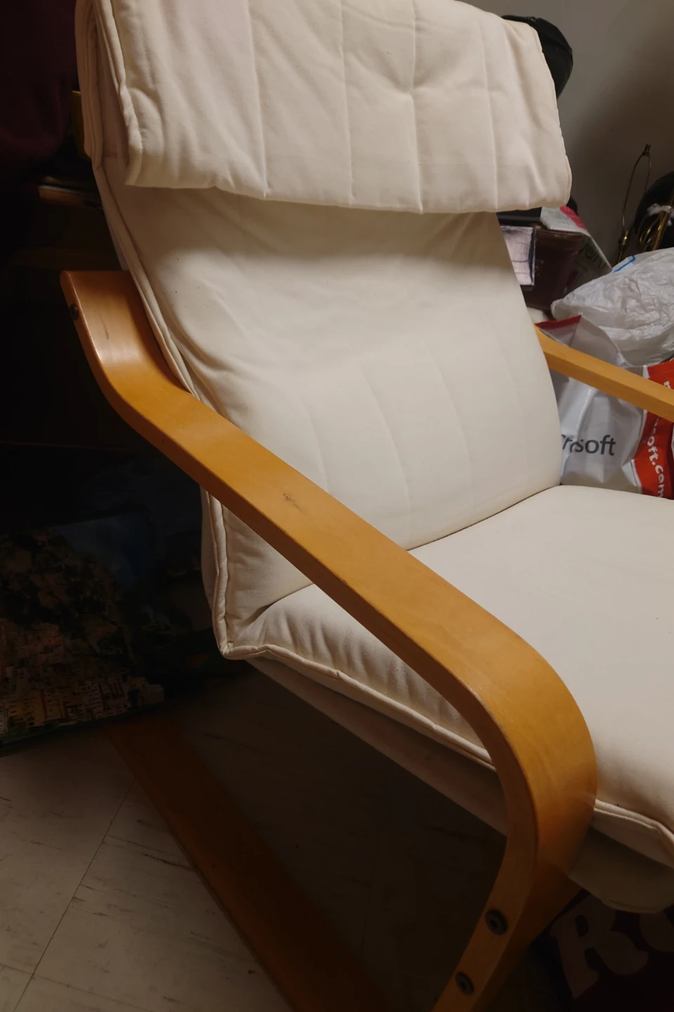 2 Cream Armchair with Wooden Frame (Ikea)