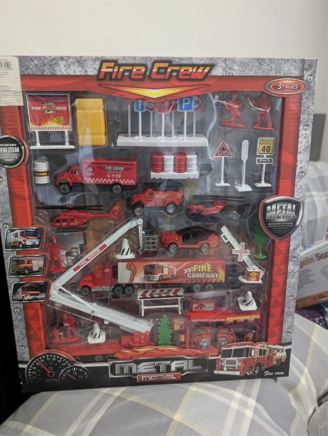Selling a brand new Metal Model Fire Crew set, still in its original packaging! This set is perfect for kids aged 3 and up. It includes a variety of fire-related vehicles and accessories to create exciting rescue scenarios. A great gift for any young firefighter!