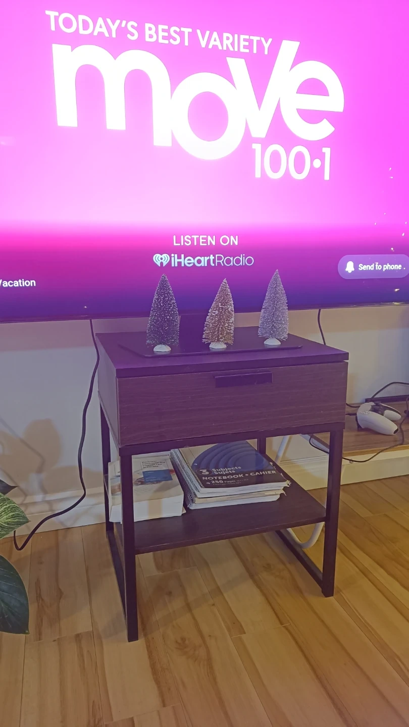 This dark wood accent table features a convenient drawer for storage and an open shelf below. It's a handy spot to place remotes, books, or decorative items. The compact size makes it suitable for small spaces.