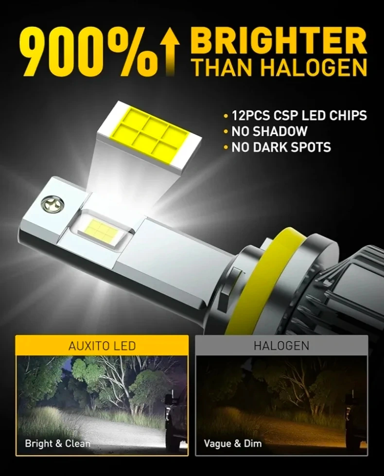 Selling a brand new set of AUXITO 2026 upgraded H11 LED headlight bulbs. These are 120W 30000LM per set, 900% brighter, and 6500K cool white. They're H8 H9 LED light bulbs designed for halogen replacement, plug and play, and come in a pack of 2!