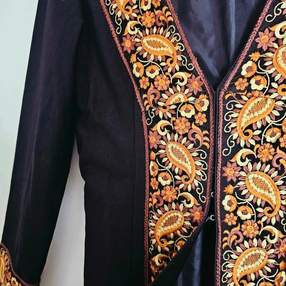 Kashmiri embroidery boho luxe Indian Pakistani fashion IndoWestern artisan made paisley statement coat hippie hippy ethnic tribal festival fest
