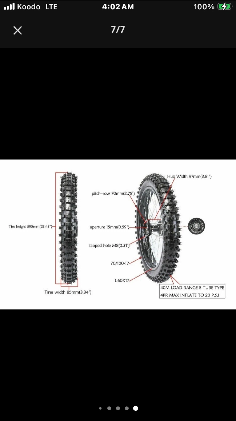 Buy & Sell17" Wheel 70/100-17 Tire For Pit Bike Apollo 140cc 110 150cc17" Wheel 70/100-17 Tire For Pit Bike Apollo 140cc 110 150cc$50New in the box. Never used. Takes 15mm axle. Dave Text 4313351903ConditionNewWHERE TO MEETCheck LocationView MapSELLERDaveBroadway100 reviews1 chats·0 favorites·21 viewsSEND CHAT TO SELLERHi Dave! I’m interested in your listing.Hi Dave! I’m interested in your listing.Get the Karrot app to chatSign In to chat