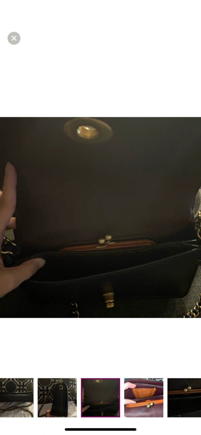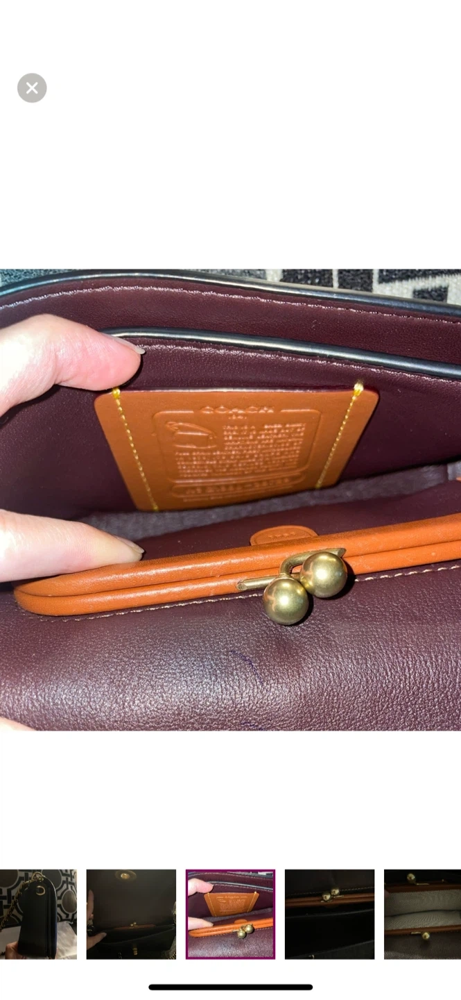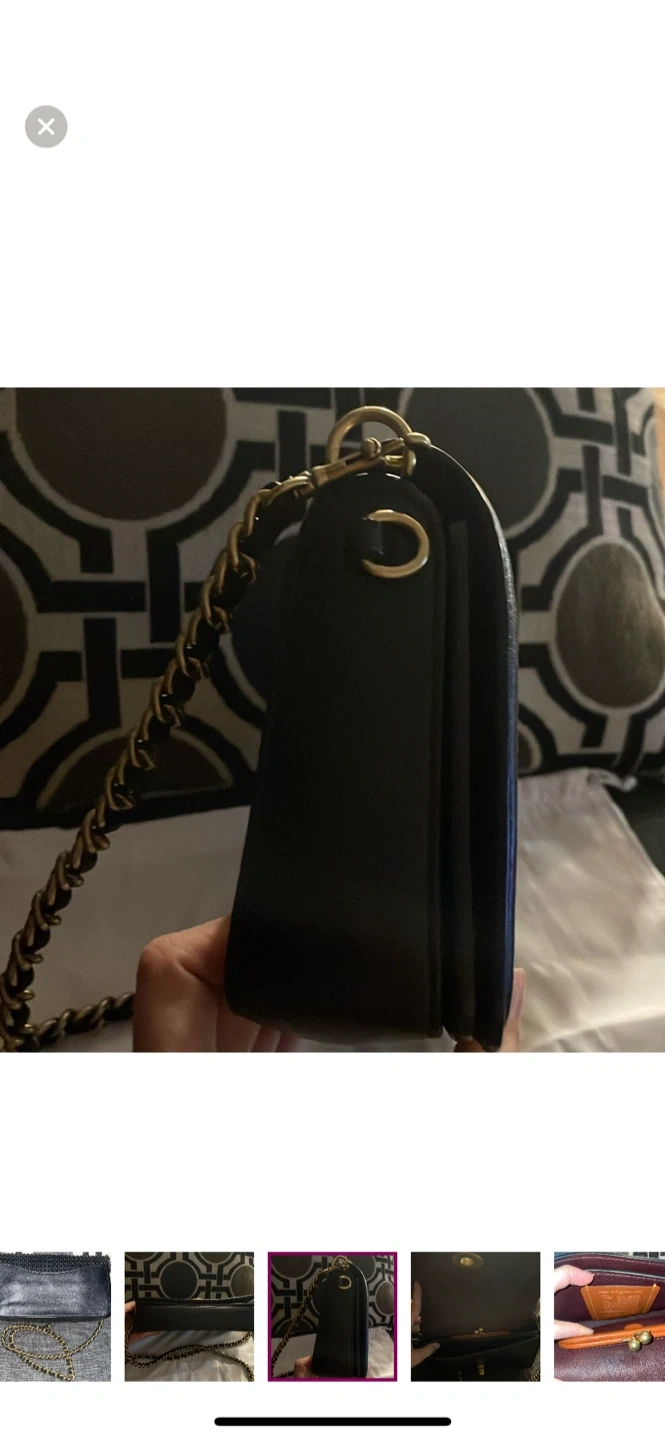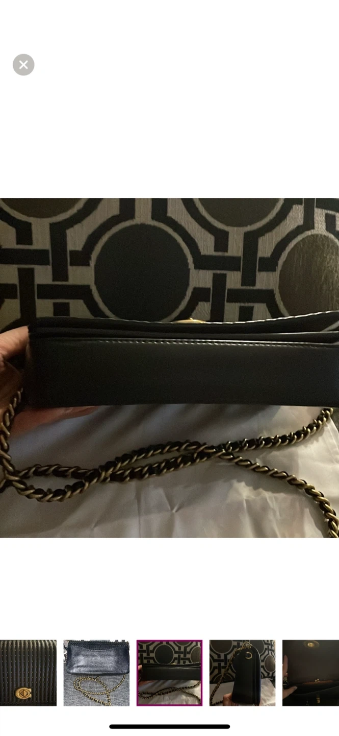 Selling a stylish black leather Coach bag. It's in brand new condition and perfect for everyday use or a night out. The bag features a chain strap and a secure closure. It also comes with the original Coach dust bag and care instructions!