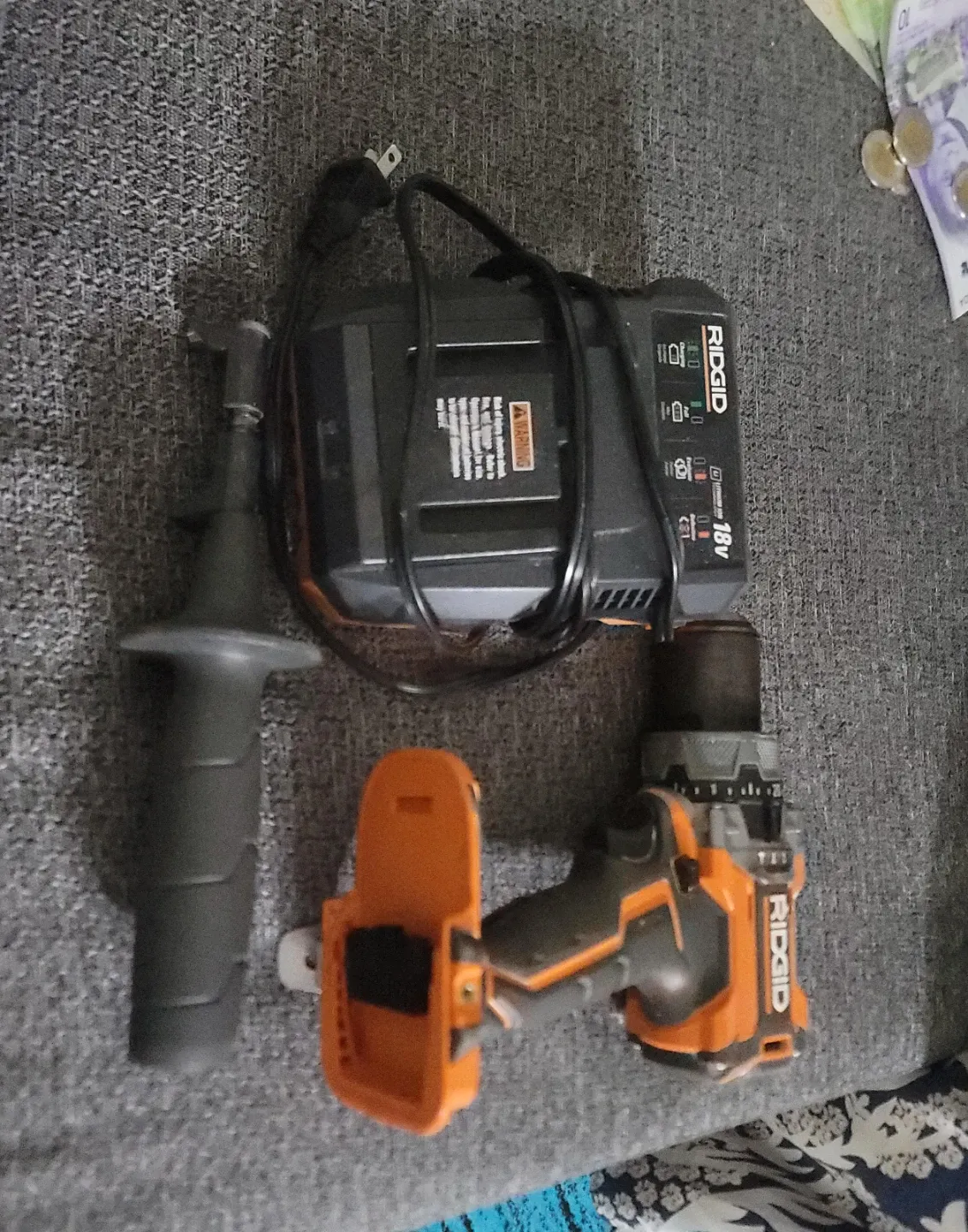 Selling my RIDGID 18V cordless hammer drill. Charger and handle. It's in good condition and ready for the next project.