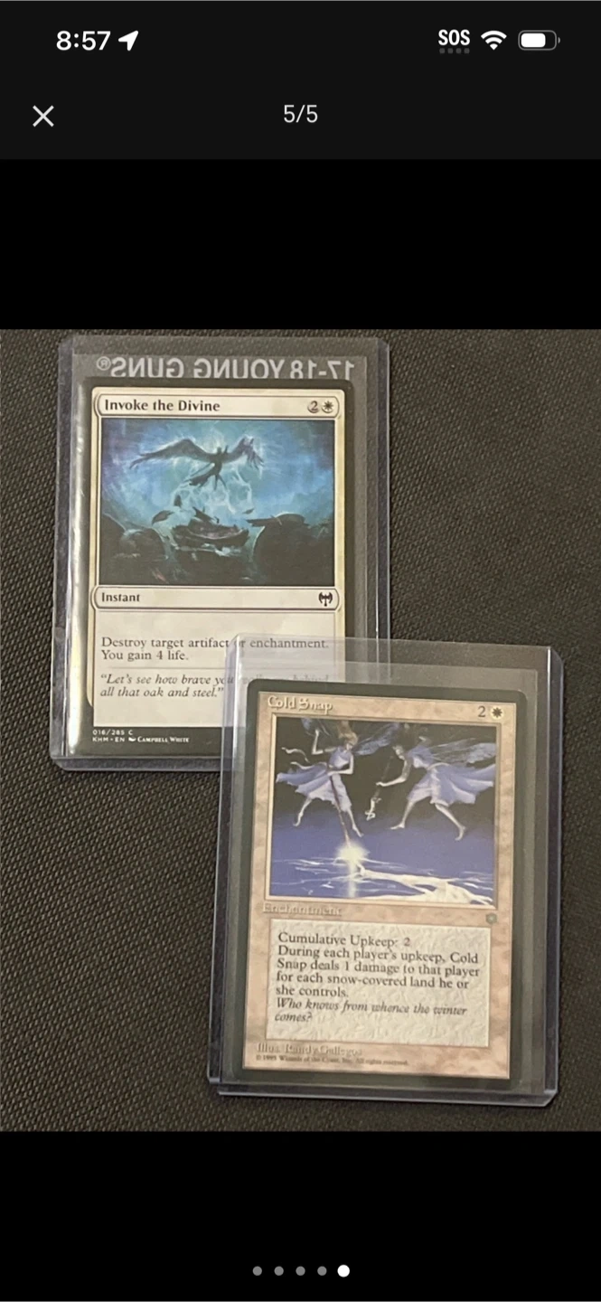 Collection of various Magic: The Gathering cards, including Nivix, Aerie of the Firemind, Invoke the Divine, Cold Snap, and Mesa Falcon. Some cards are from the 17-18 Young Guns set.