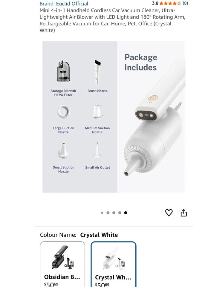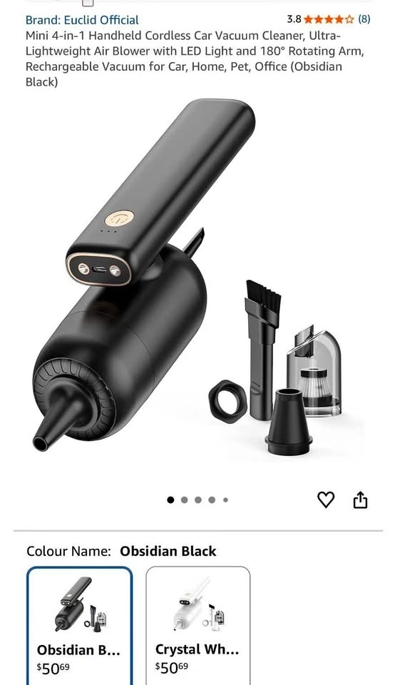 NEW Euclid Official Mini 4-in-1 Cordless Car Vacuum Cleaner