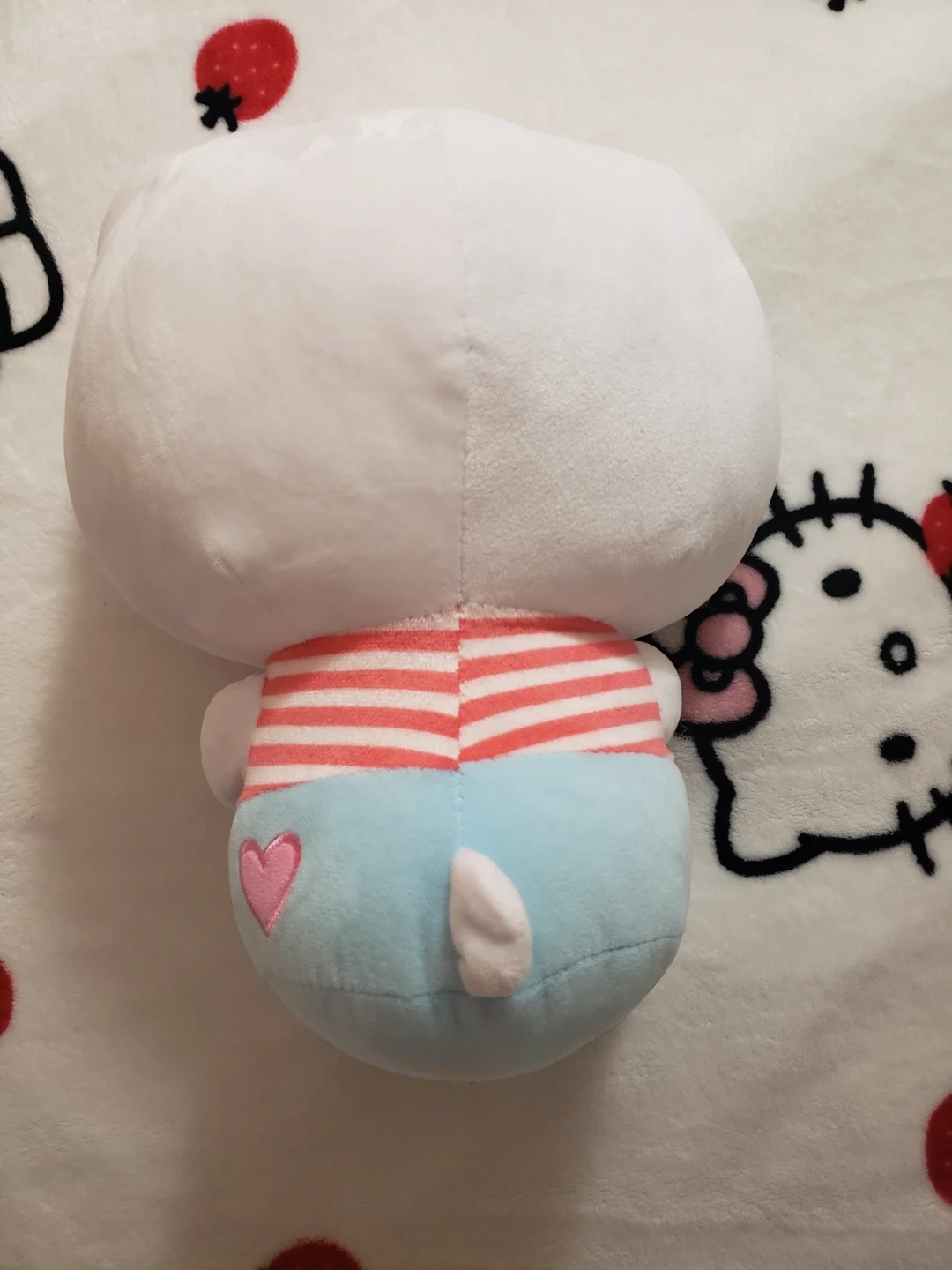 This is a cute plush toy of Hello Kitty holding a strawberry. It's soft The hight is 13 inches and the lenght of the head is 10!