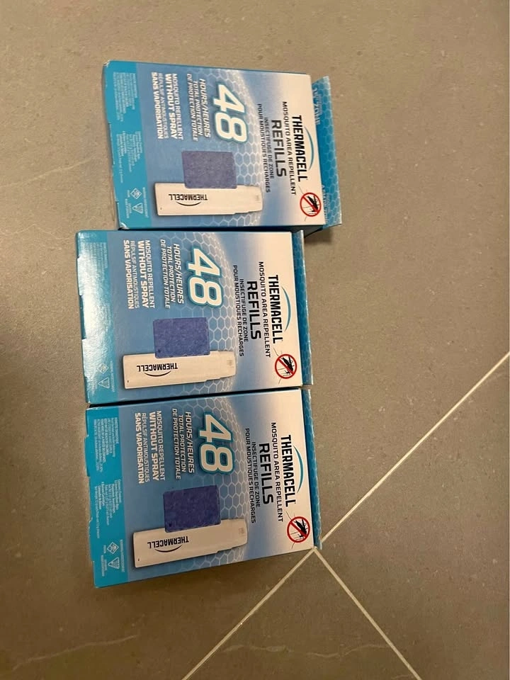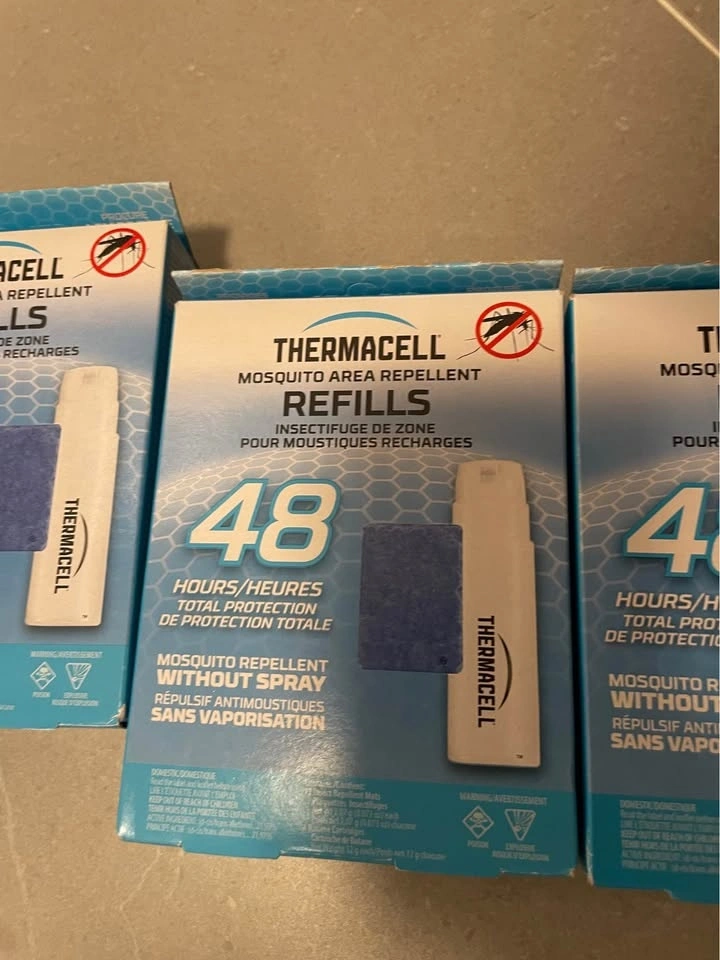 Buy & SellThermacell Mosquito Repellent Refills - 48 Hour PackThermacell Mosquito Repellent Refills - 48 Hour Pack$15This pack contains 15 refills, with 15 individual mats and 3 repellent mats. Each mat provides 4 hours of protection, totaling 40 hours per pack.WHERE TO MEETCheck LocationView MapSELLERverifiedZoeMaple600 reviews0 chats·0 favorites·0 viewsSEND CHAT TO SELLERHi Zoe! I’m interested in your listing.Hi Zoe! I’m interested in your listing.Get the Karrot app to chatSign In to chat