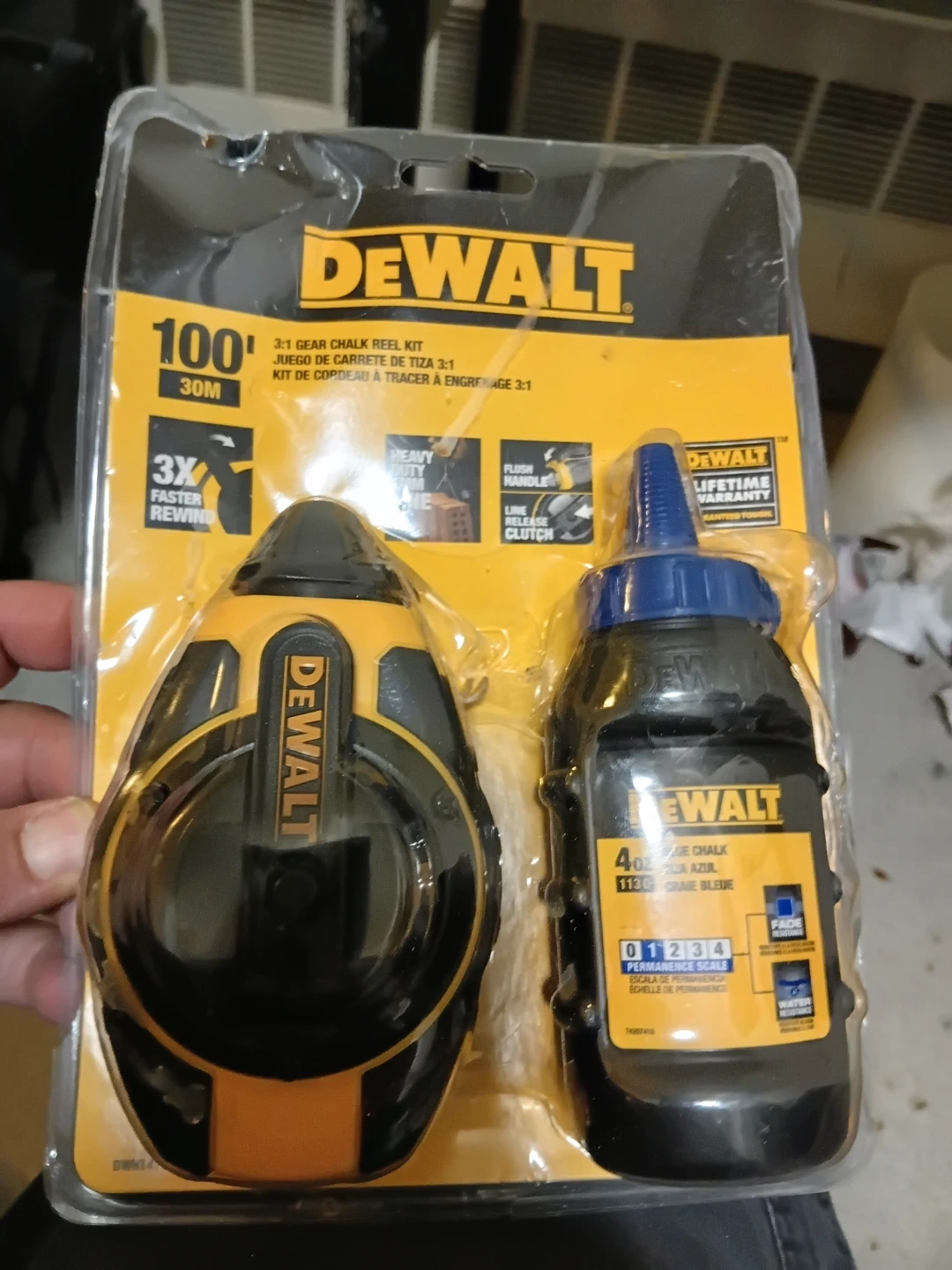 Buy & SellDEWALT 3:1 Gear Chalk Reel Kit with 4oz Blue ChalkDEWALT 3:1 Gear Chalk Reel Kit with 4oz Blue Chalk$14This is a new DEWALT 3:1 gear chalk reel kit. It comes with 100' of line and 4oz of blue chalk. The chalk is fade resistant and water resistant.ConditionNewWHERE TO MEETCheck LocationView MapSELLERverifiedshawnDowntown600 reviews1 chats·0 favorites·10 viewsSEND CHAT TO SELLERHi shawn! I’m interested in your listing.Hi shawn! I’m interested in your listing.Get the Karrot app to chatSign In to chat