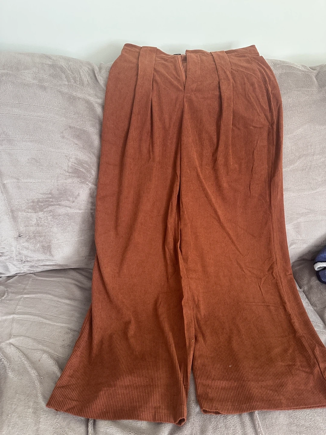 Selling a pair of Vintamour vintage elegant women's pants. These pants feature a stylish corduroy texture and a comfortable fit, perfect for adding a touch of vintage charm to your wardrobe. They come with pockets and a belt.