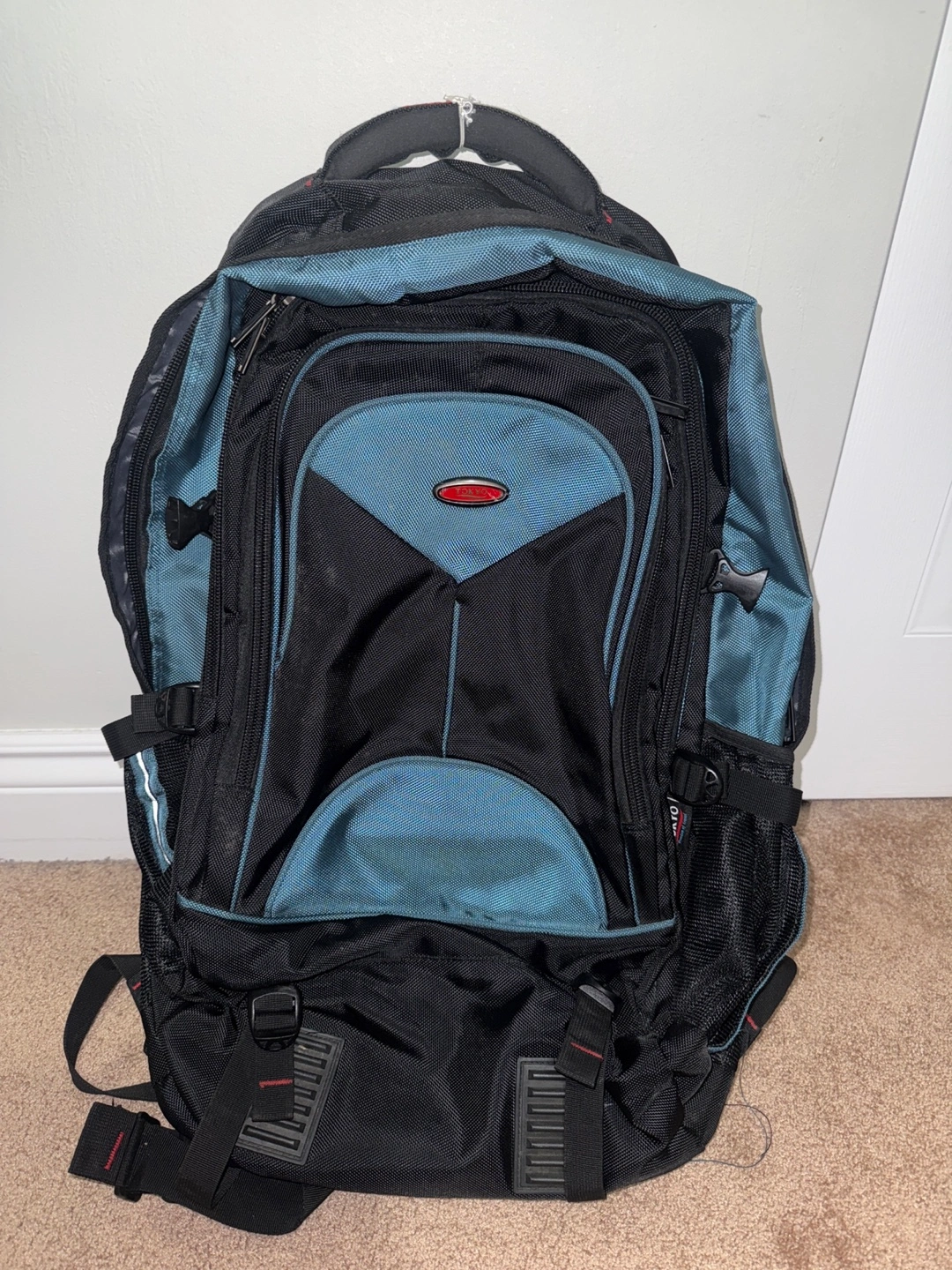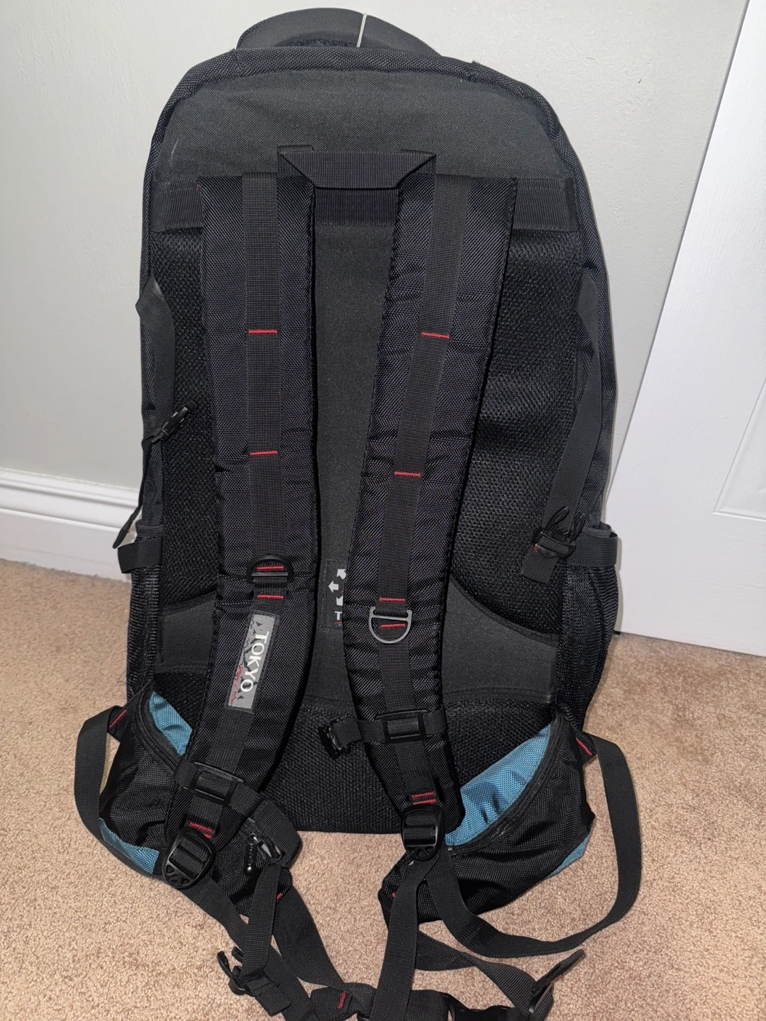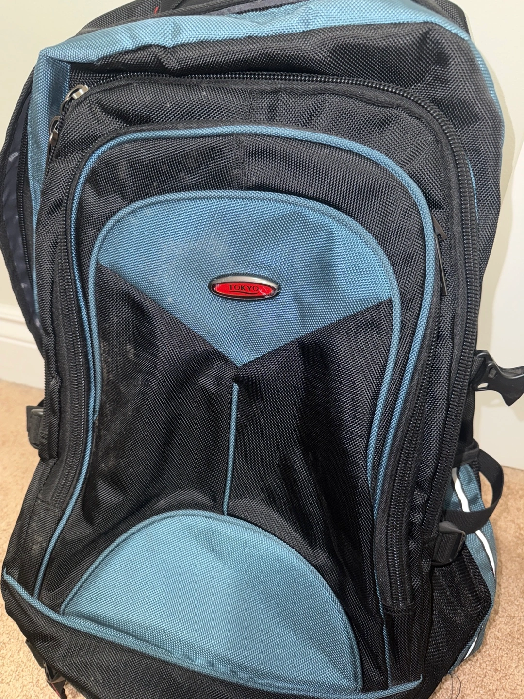 Selling a Tokyo hiking/ travel backpack in black and blue. It has lots of compartments to keep everything organized. Comfortable wide straps. It's in great shape condition. Used like new