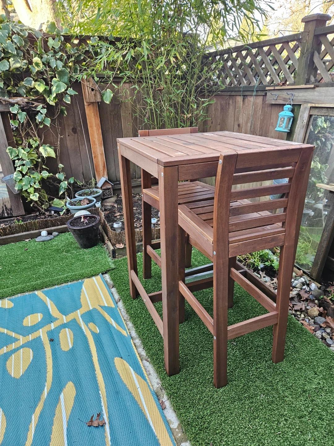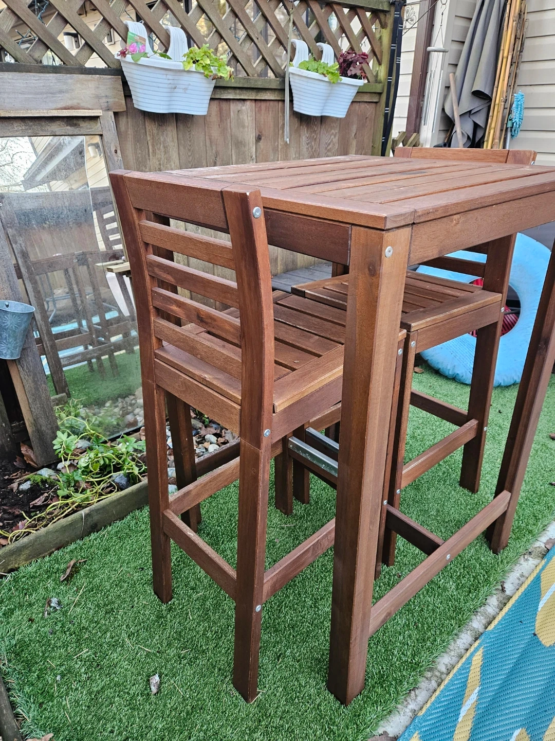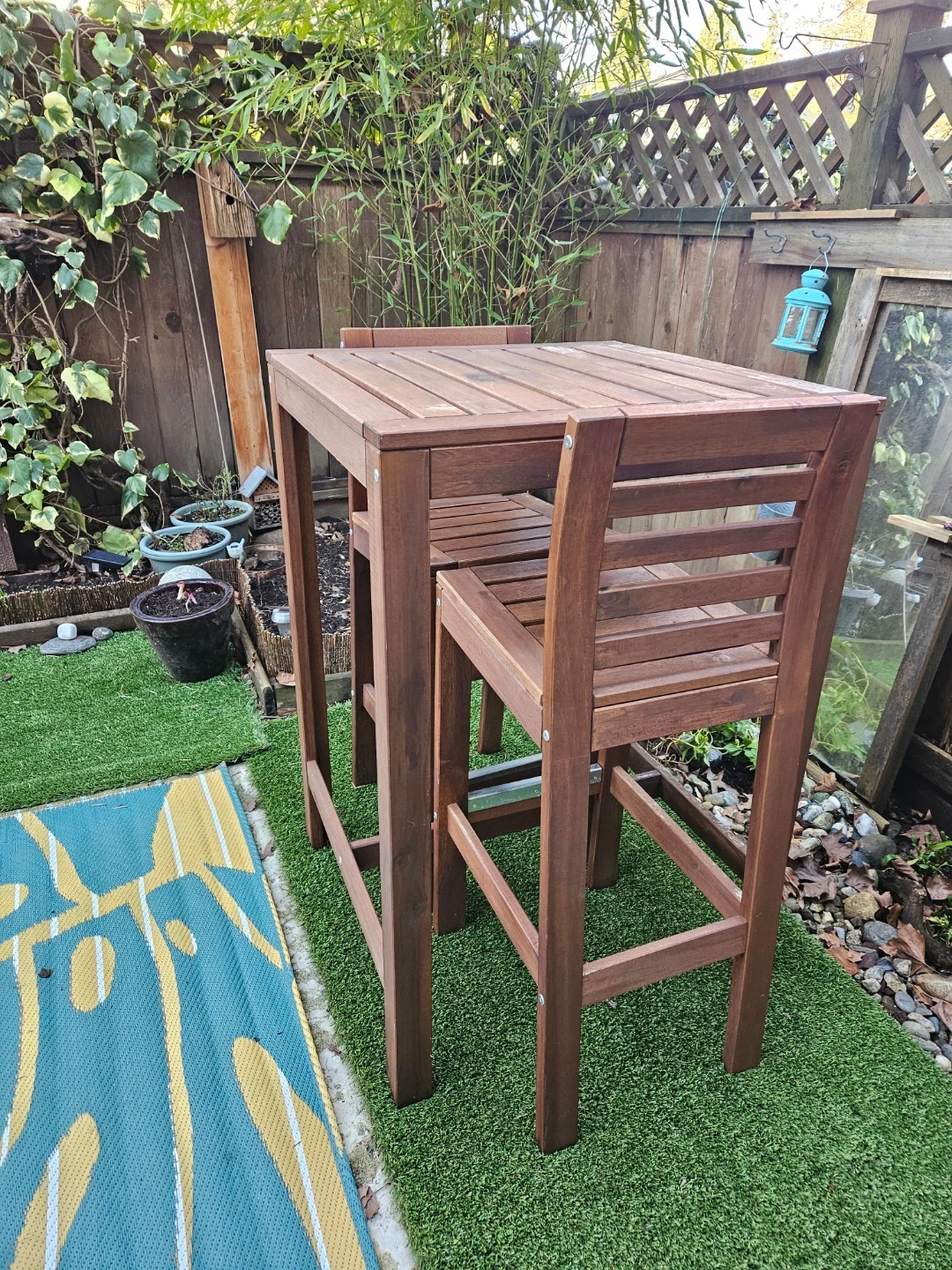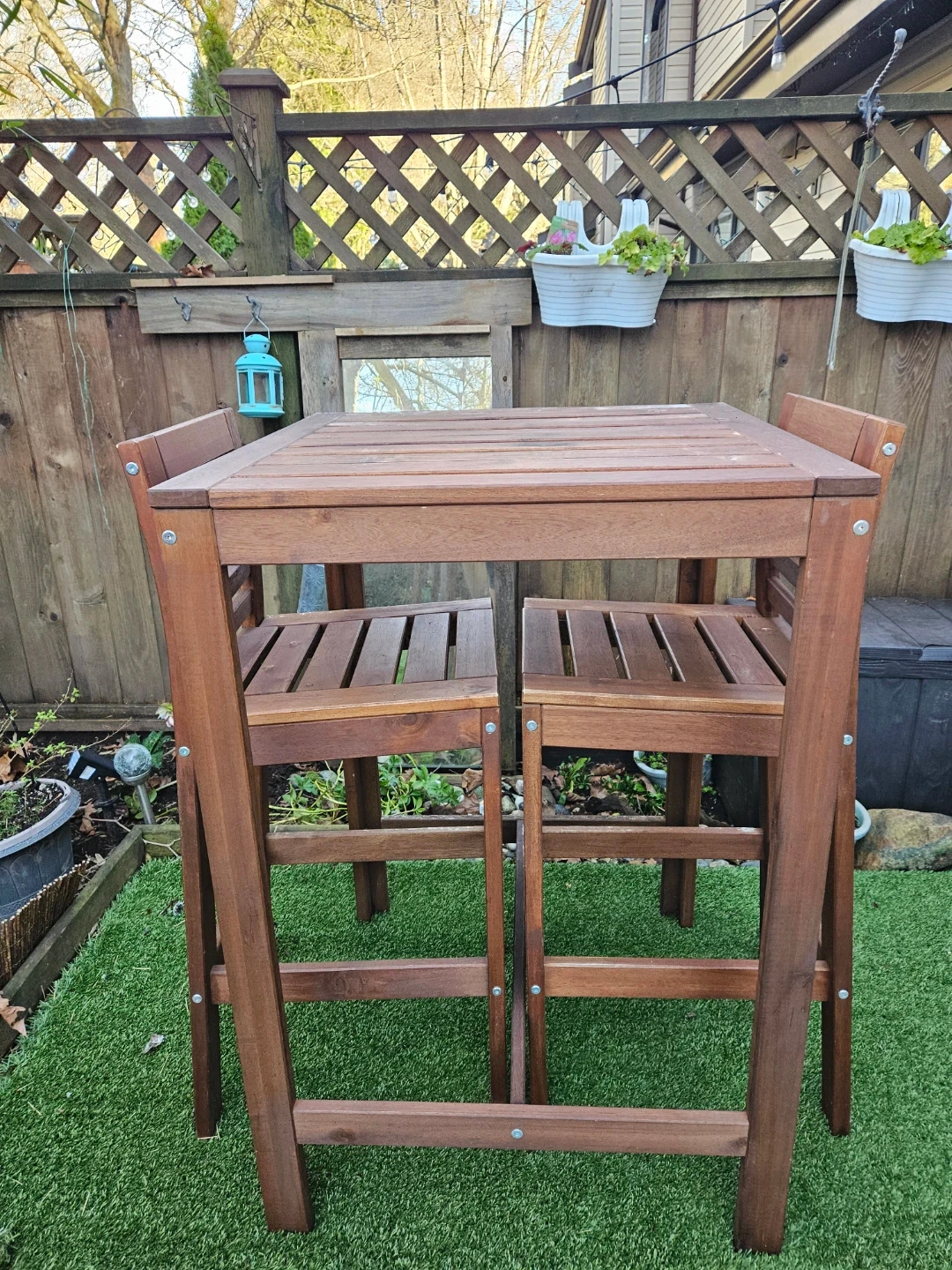 Buy & SellWooden Bar Table and Chairs SetWooden Bar Table and Chairs Set$110Solid Wood bar table and two chairs. Great for a patio or balcony. Perfect for enjoying a morning coffee outside!ConditionGoodDimensions63 x 63 cm, 105 cm high. WHERE TO MEETCheck LocationView MapSELLERverifiedShaeKirkstone651 review0 chats·1 favorites·15 viewsSEND CHAT TO SELLERHi Shae! I’m interested in your listing.Hi Shae! I’m interested in your listing.Get the Karrot app to chatSign In to chat