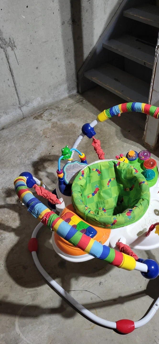 This baby activity jumper features multiple toys and a spinning seat for entertainment. It's designed to keep little ones engaged and active. Suitable for babies who can hold their heads up unassisted.