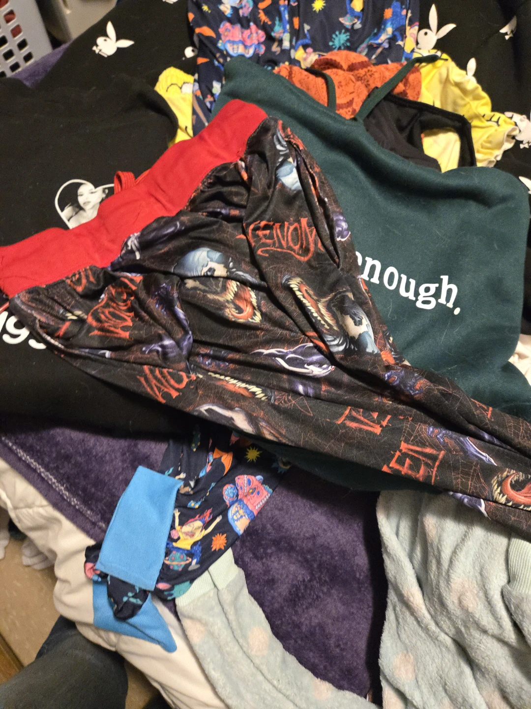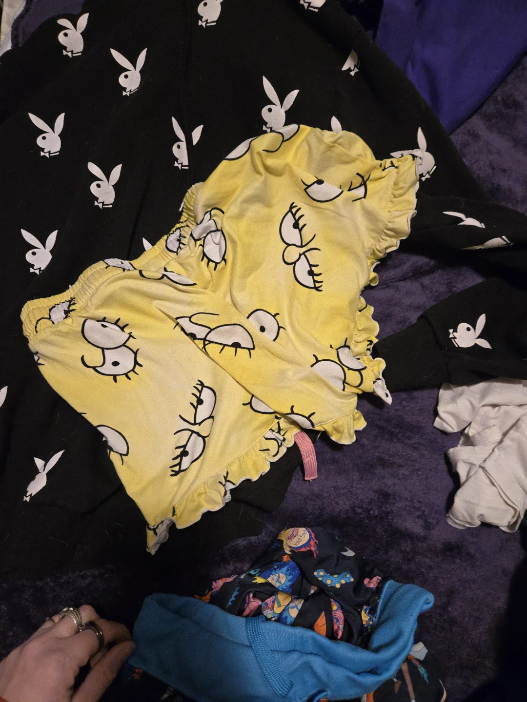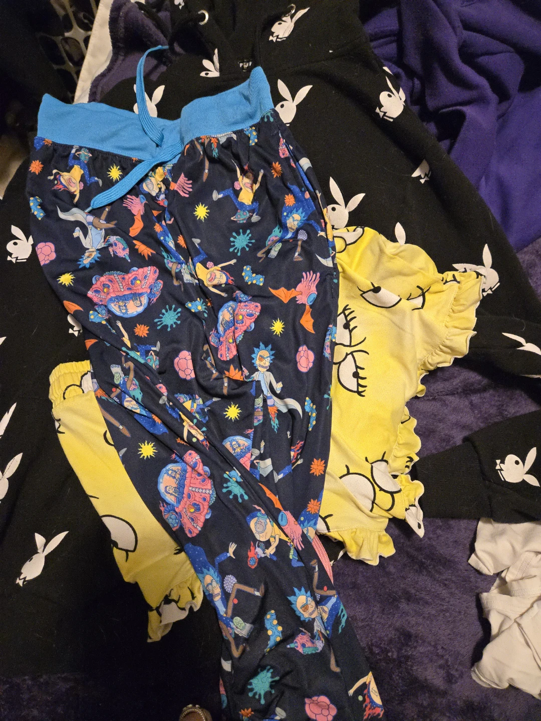 Selling a bunch of assorted women's clothing items. There's a Playboy hoodie, Rick and Morty pajama pants, and other fun pieces! All in good condition. Pick up only please sizes are small and medium
