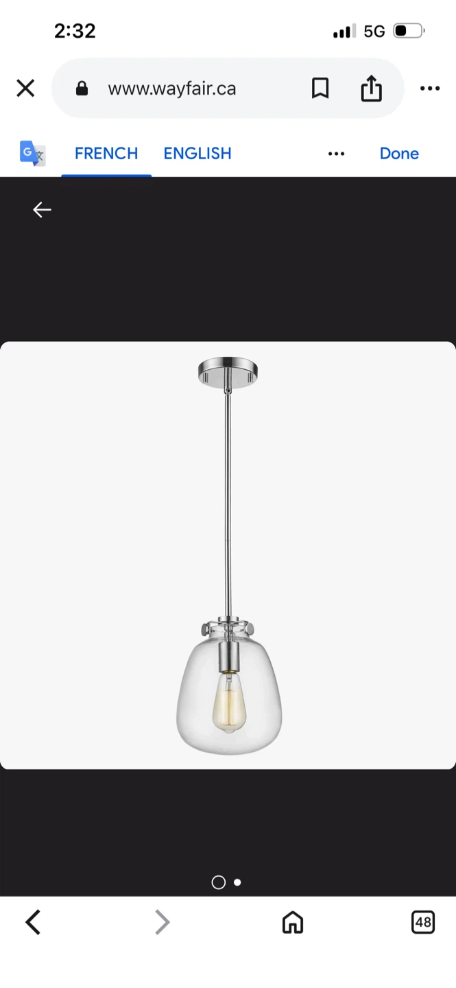 This pendant light features a clear glass shade and a chrome finish. It includes a metal rod for hanging. The light bulb is not included.
