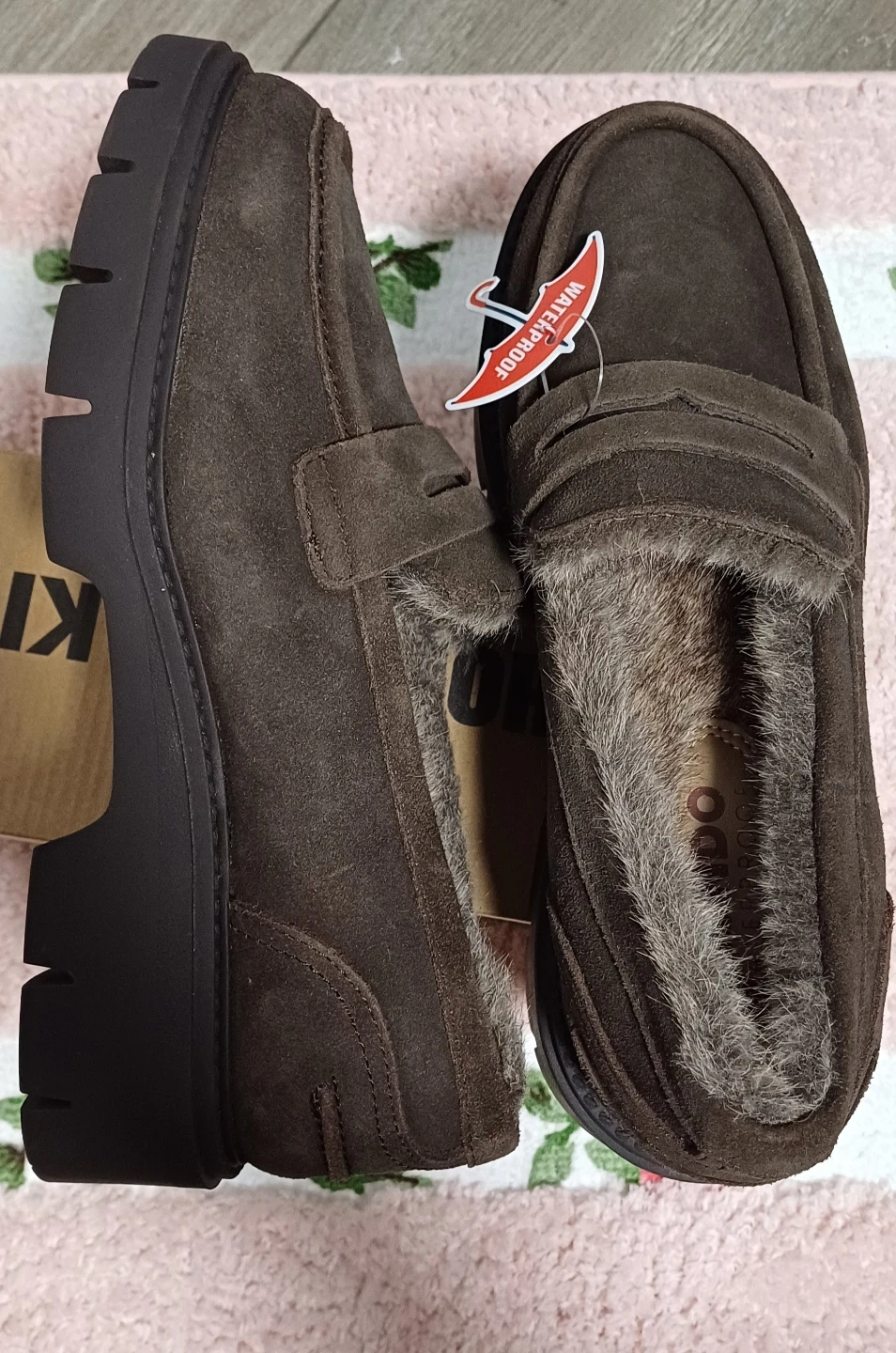 Warm and cozy Blondo waterproof suede loafers. These slip-on shoes feature a faux-fur lining for extra comfort. Great for chilly days!