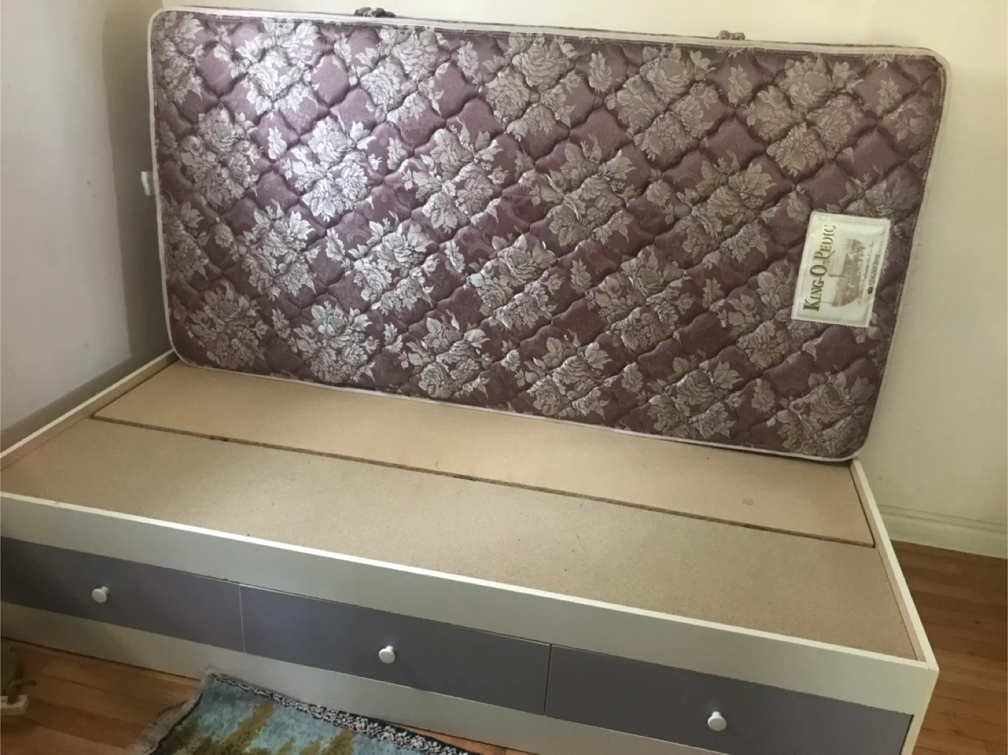 This twin bed comes has three spacious drawers for storage. Great for saving space in a bedroom! Sturdy.