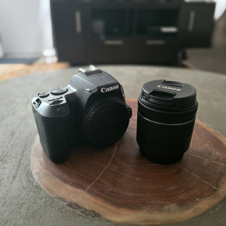 Selling a Canon EOS Rebel SL3 camera. It's in great condition and ready for a new home. Comes with a lens and a microphone. and two batteries