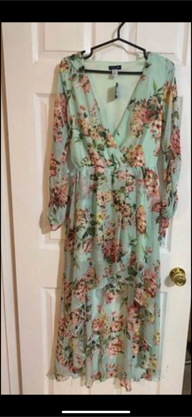 Selling a beautiful UK2LA floral maxi dress in size small. It's a lovely light green colour with a floral pattern. Originally bought for $42.99. Perfect for a special occasion or just feeling fancy!