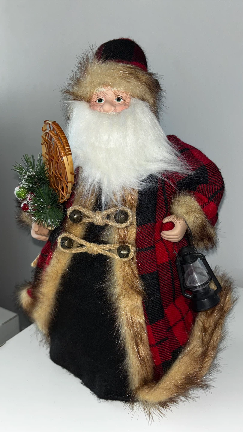 Plaid Santa Claus Holiday Figurine Tree Topper/ Table Decor