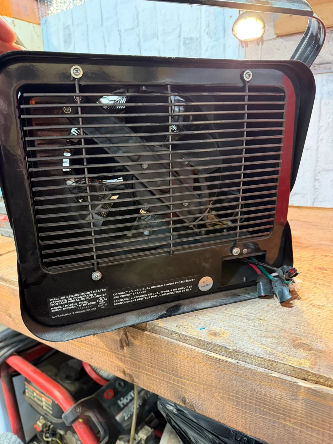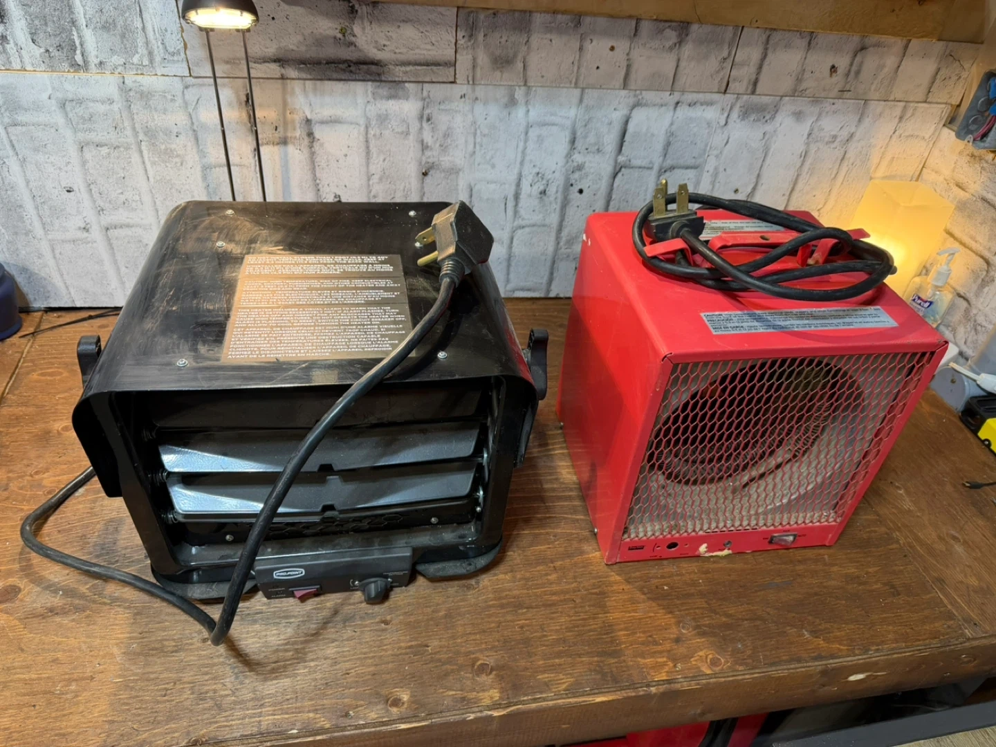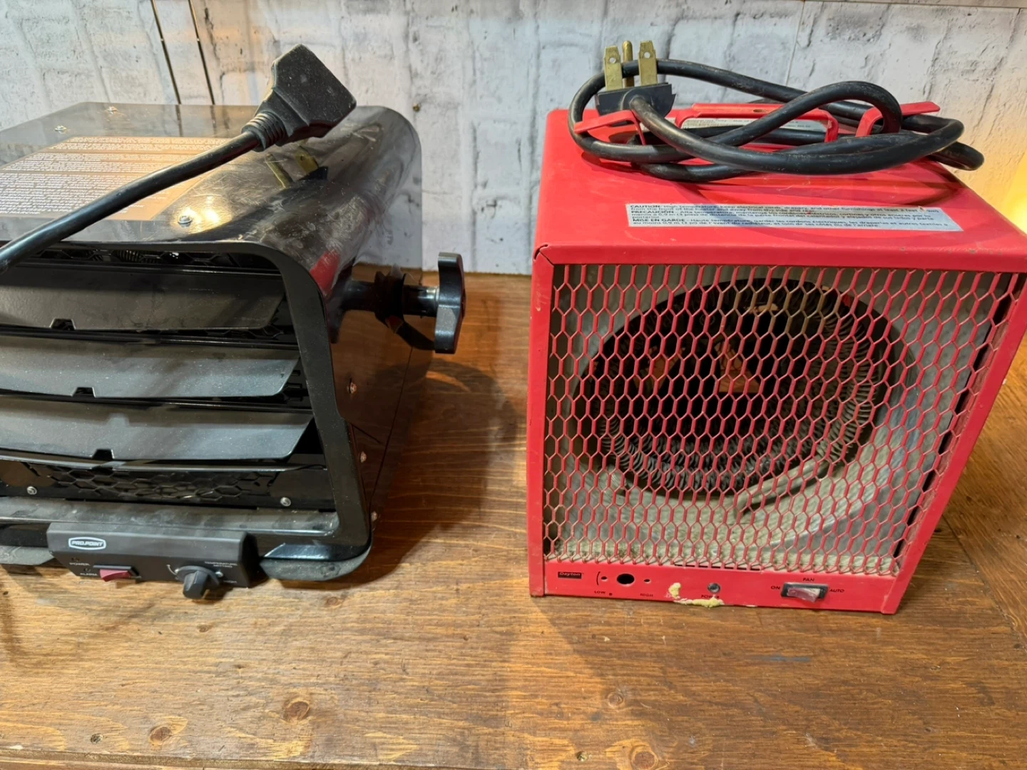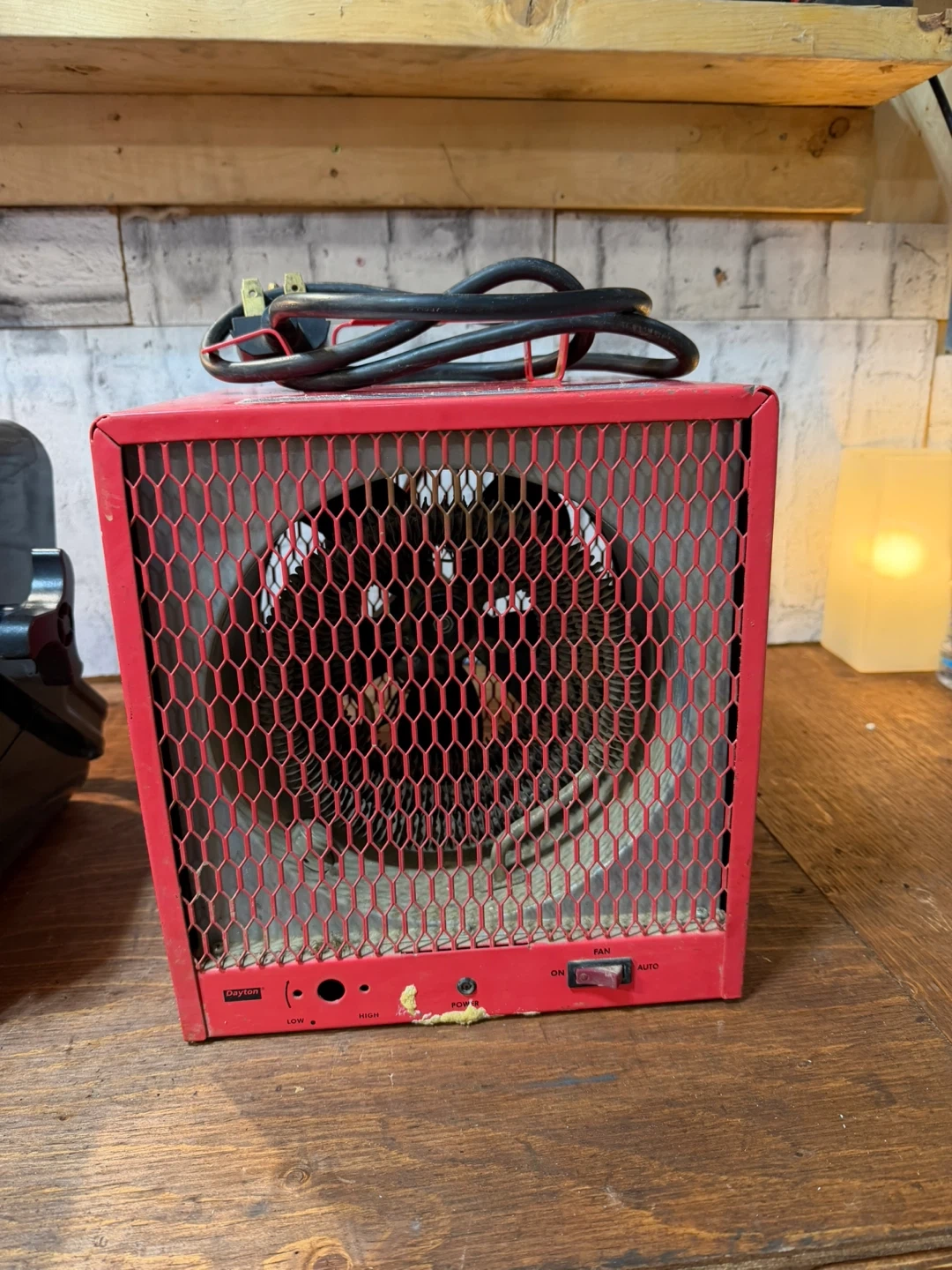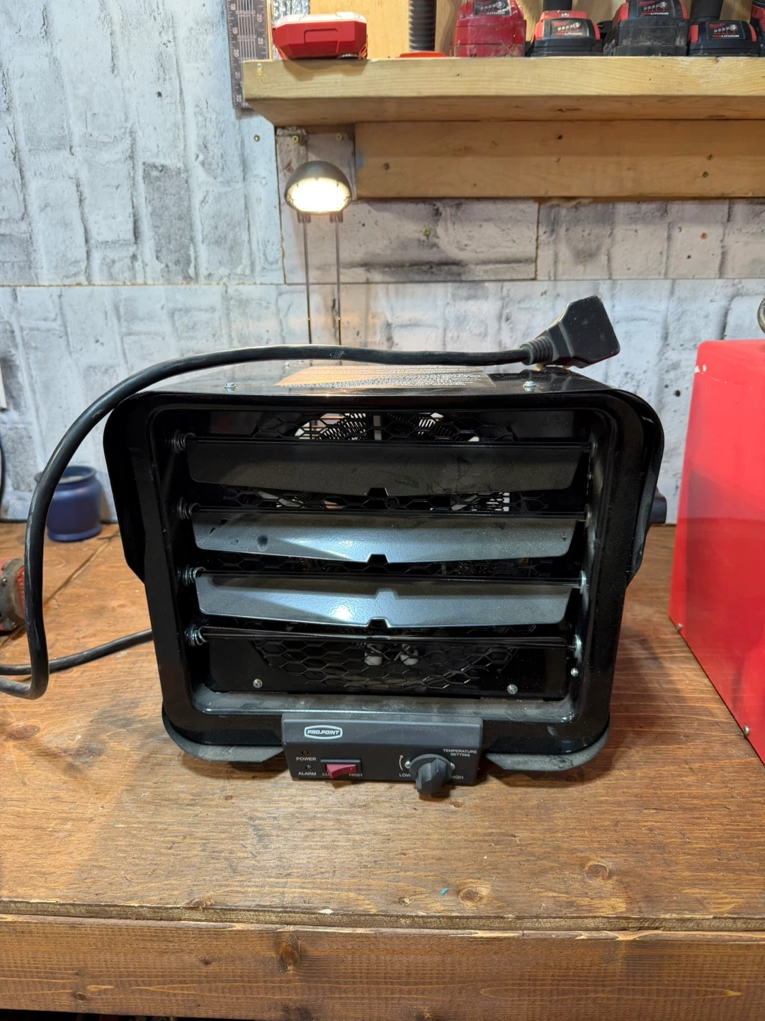 This red portable electric heater has multiple settings including low, high, and fan auto. It's great for providing warmth in smaller spaces. Keep your garage or workshop cozy this winter!