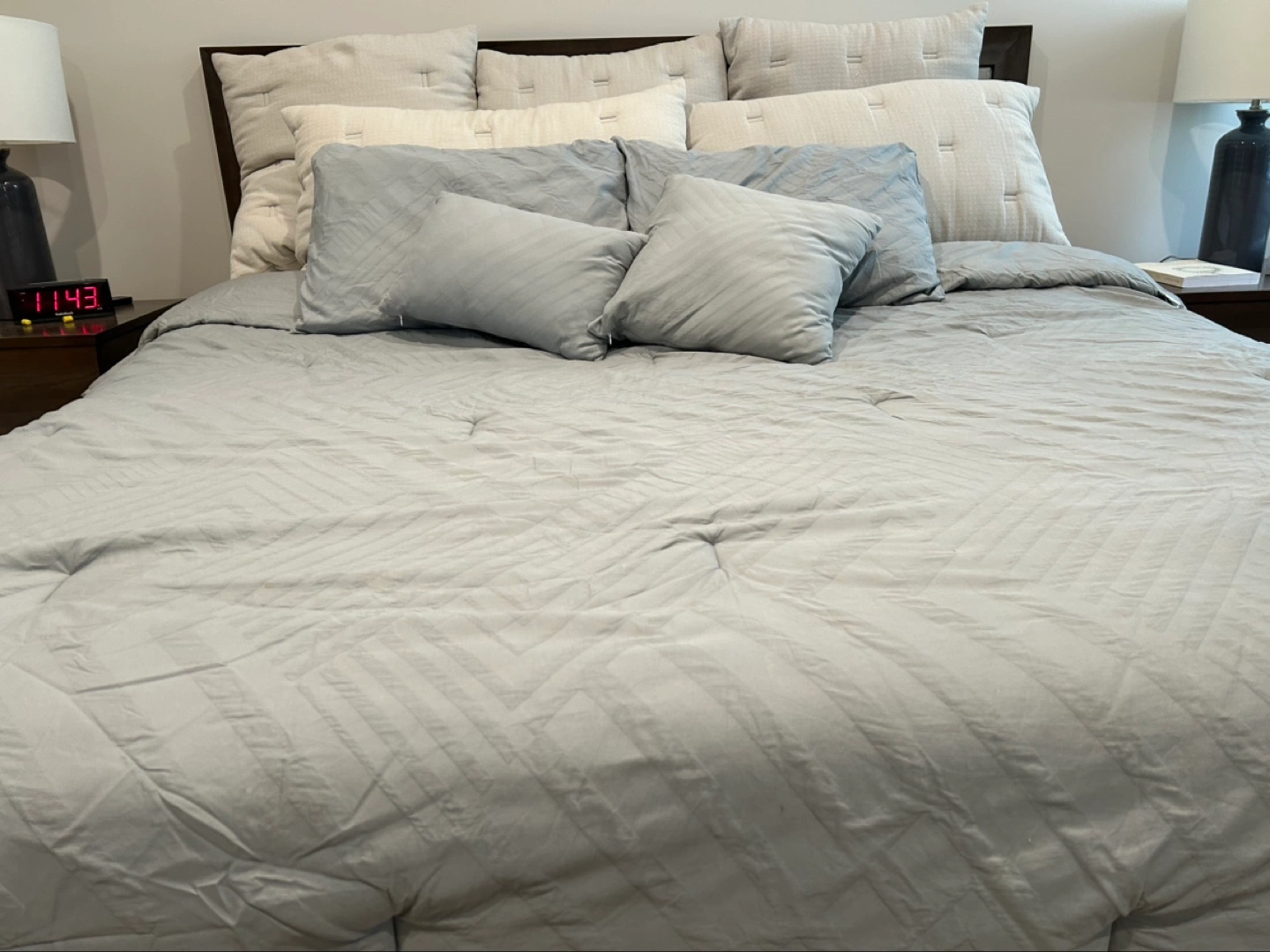 Buy & SellQueen Comforter 5 piece SetQueen Comforter 5 piece Set$50Queen size grey comforter set. Includes comforter and two Shams and Two toss pillows. Subtle geometric pattern. Pre-owned, good condition.WHERE TO MEETLakeshoreView MapSELLERLMTecumseh100 reviews0 chats·0 favorites·99 viewsSEND CHAT TO SELLERHi LM! I’m interested in your listing.Hi LM! I’m interested in your listing.Get the Karrot app to chatSign In to chat