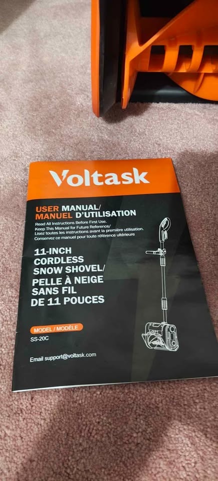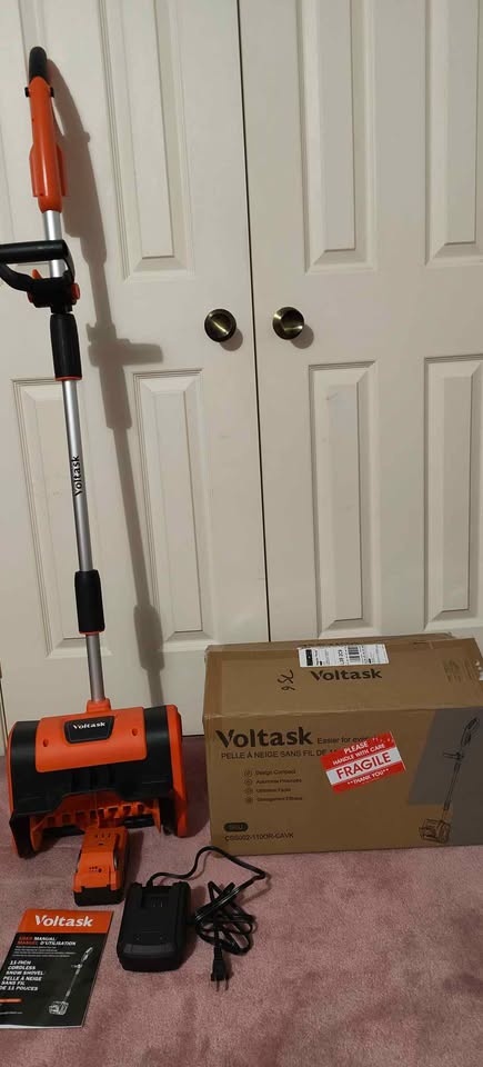BRAND New Open Box, unused. I got this a few days ago but found out it was too small for my driveway. VOLTASK (SS-20C) 24V 11-inch Cordless Snow Shovel with Adjustable Handle. This cordless snow blower weighs 7.3 pounds and can clear a path 11 inches wide and 6 inches deep. It's durable and reliable for home use. Powered by a detachable 24V 4Ah battery pack (included), enjoy 25 mins of continuous runtime. It recharges fully in 90 mins with the smart charger. Weighing only 7.3 lbs with dual adjustable handles, it reduces back strain. High-strength aluminum shaft and impact-resistant polymer housing withstand cold temperatures. Perfect for seniors, homeowners, and urban users. Clears snow from driveways, steps, patios, and sidewalks. Also great for clearing snow-packed cars and narrow walkways.