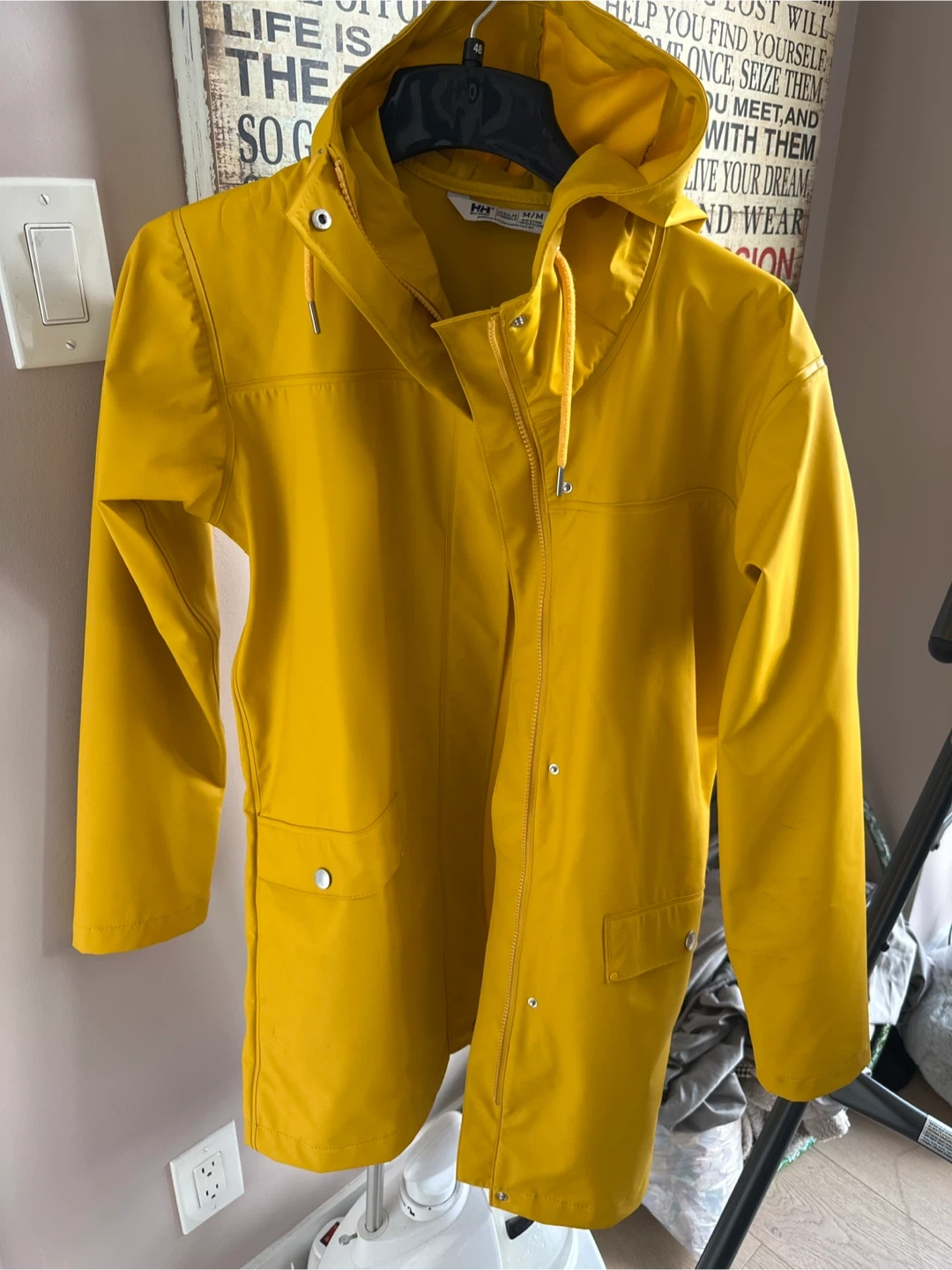 Brighten up a rainy day with this Helly Hansen rain jacket! It's a sunny yellow and in size M. Perfect for staying dry and stylish. It's in great condition and ready for a new home!