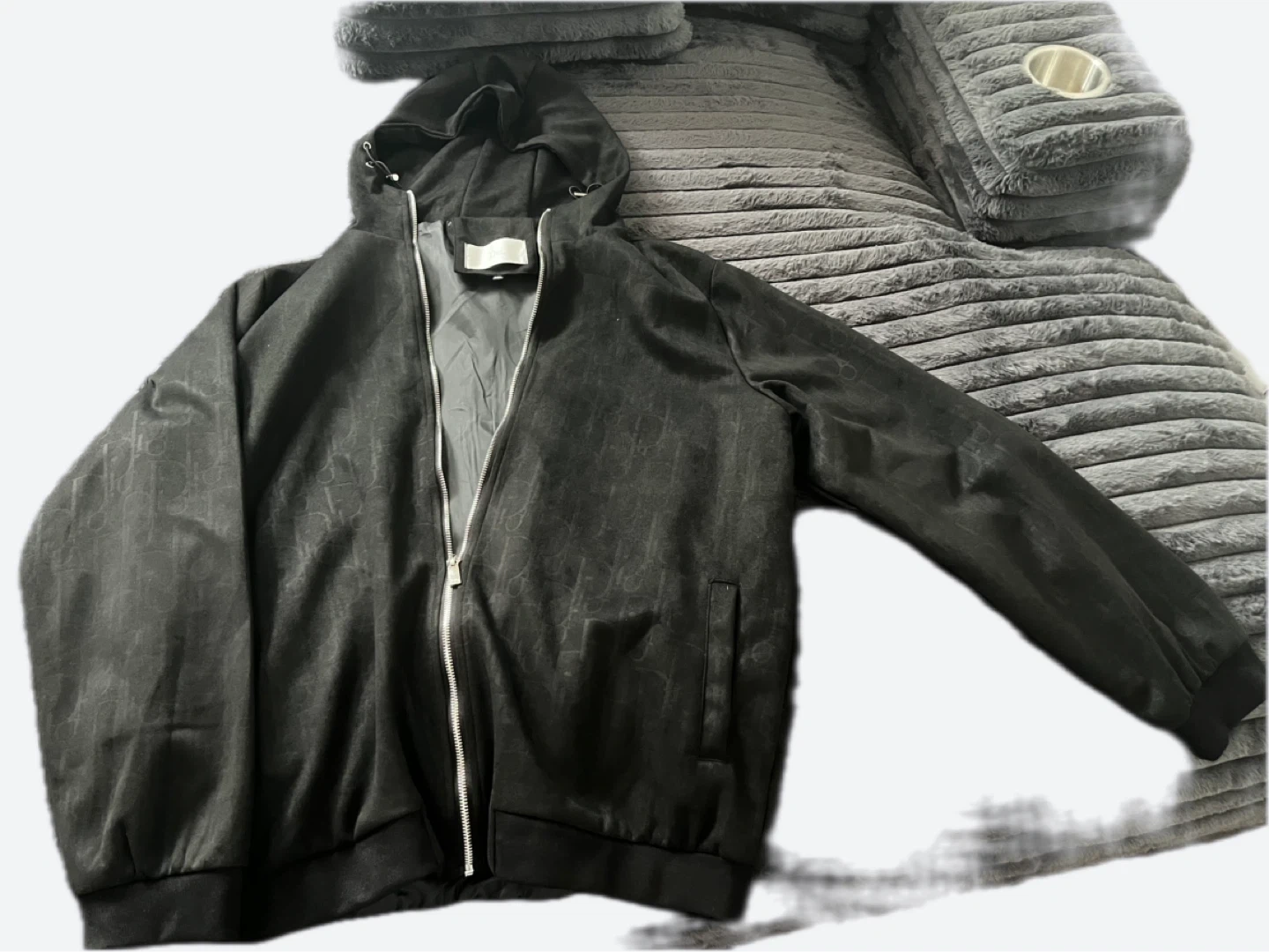 This black Dior hoodie features the iconic Dior monogram pattern all over. It has a zip-up front and a hood. Made from a soft material. Size L-XL