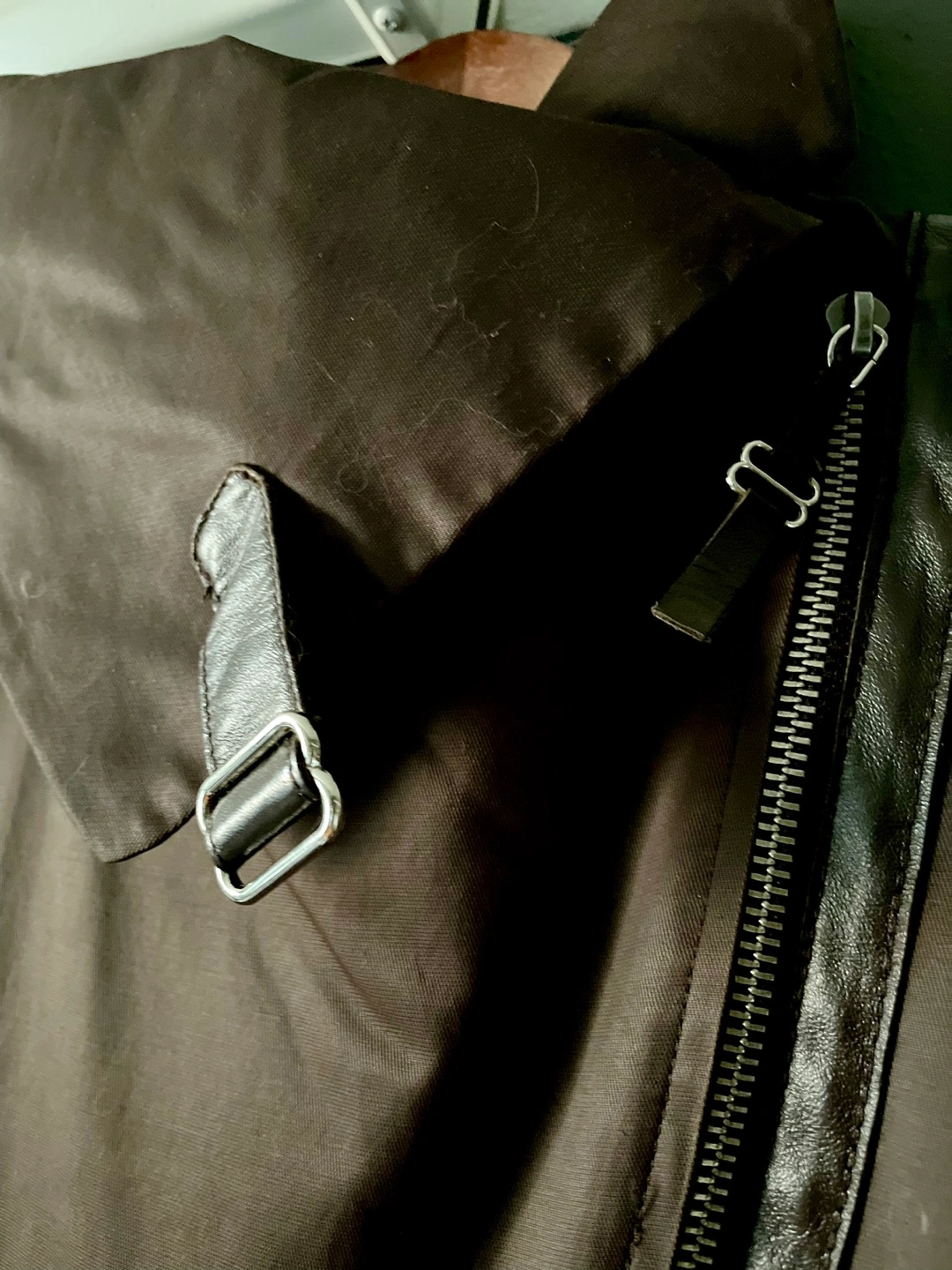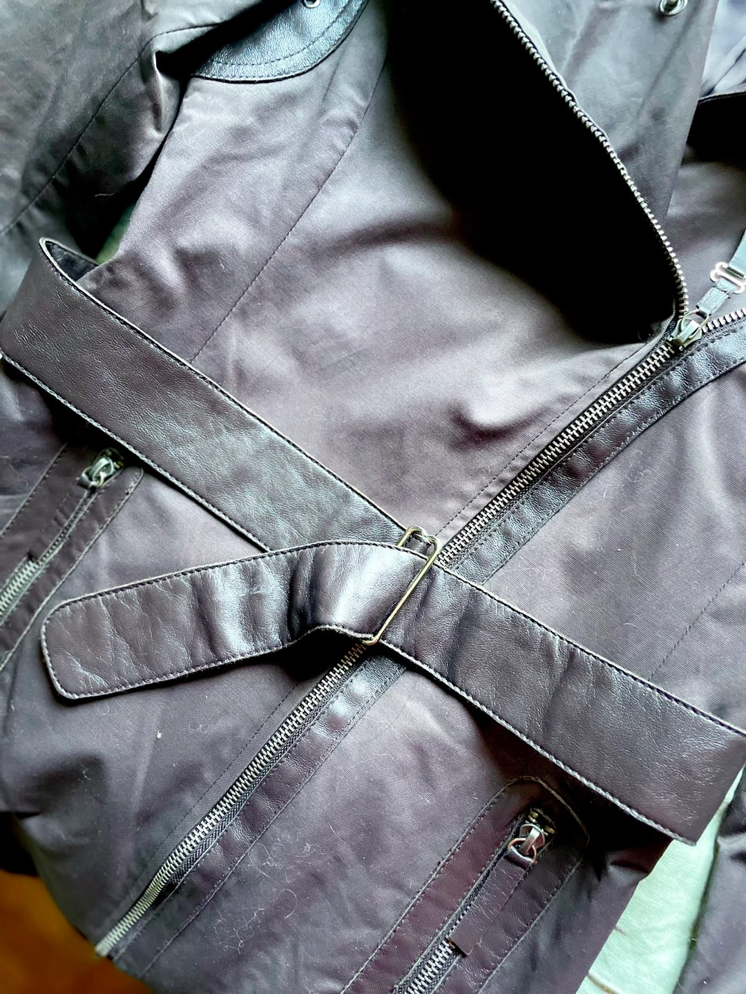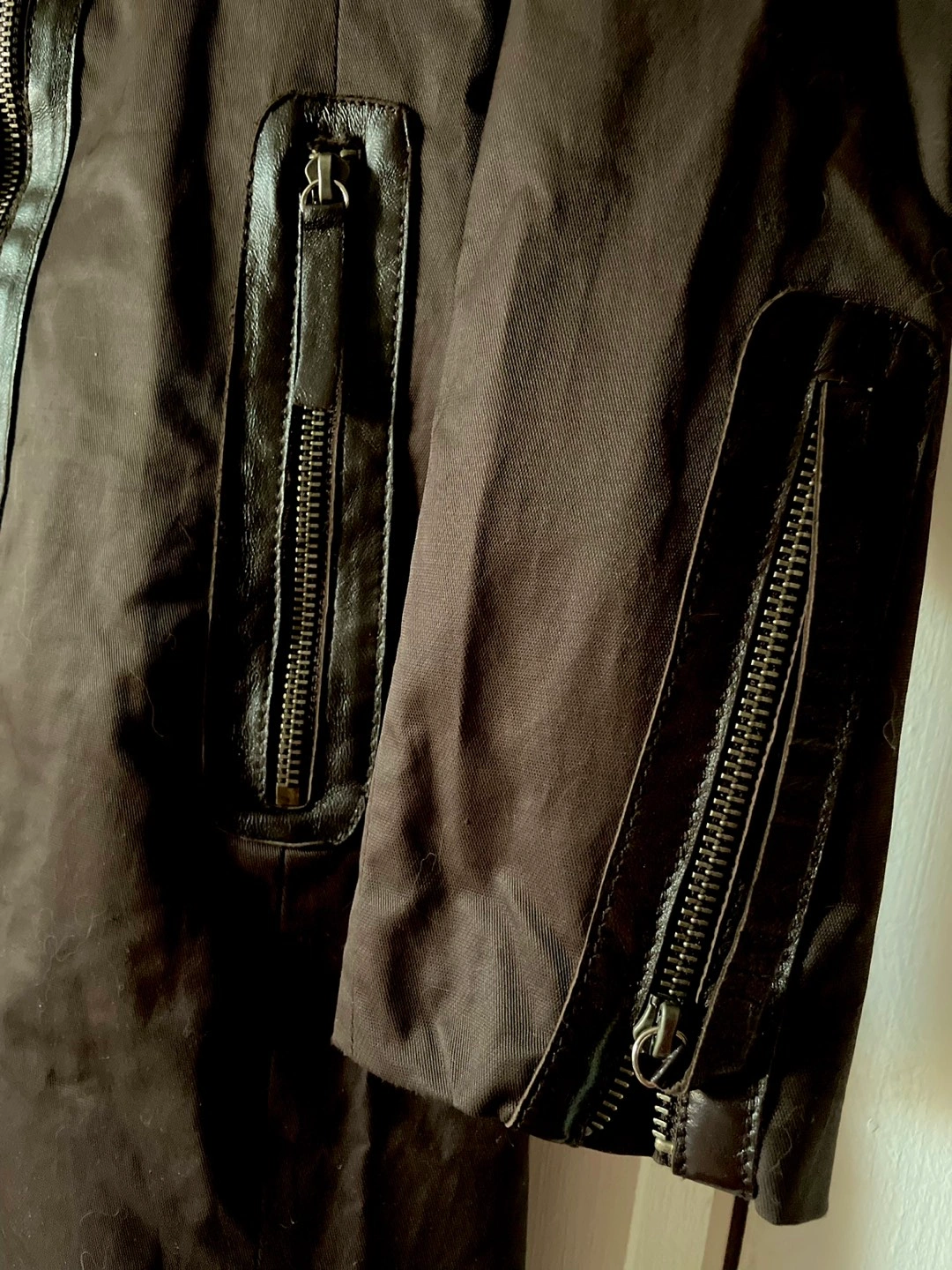 Zippers and leather all in perfect condition. Jacket is near new — no stains/damage of any kind, kept in protective suit bag.