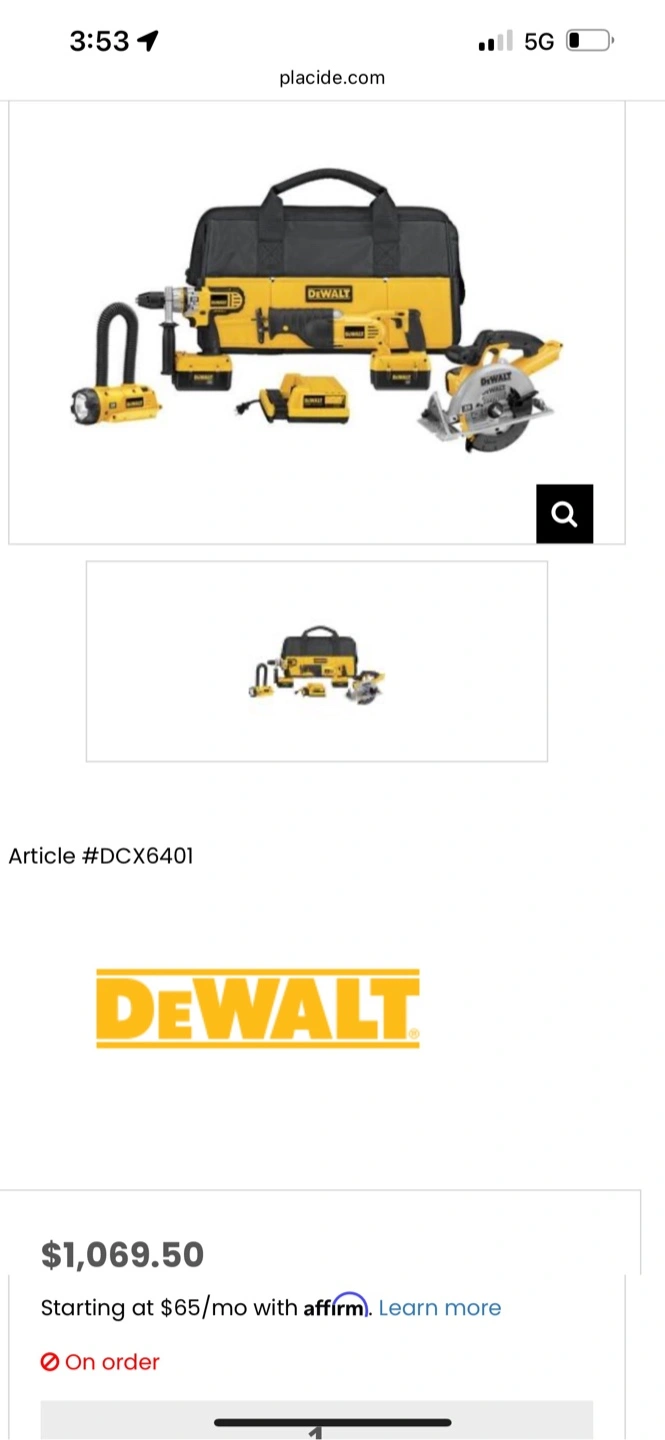 Selling a DeWalt power tool combo kit. It includes a variety of tools to help you tackle any job. The kit comes in a carrying case for easy transport and storage. Originally priced at $1,069.50 but Its been used couple times so I can let it go for 600$