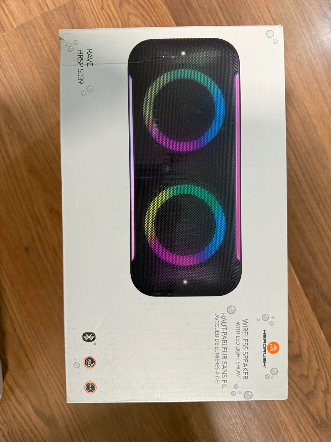 Selling HeadRush Rave HRSP 5039 wireless speaker! It's still in its original box.This speaker features LED light shows and can play music wirelessly from two sources. Used it a few times.