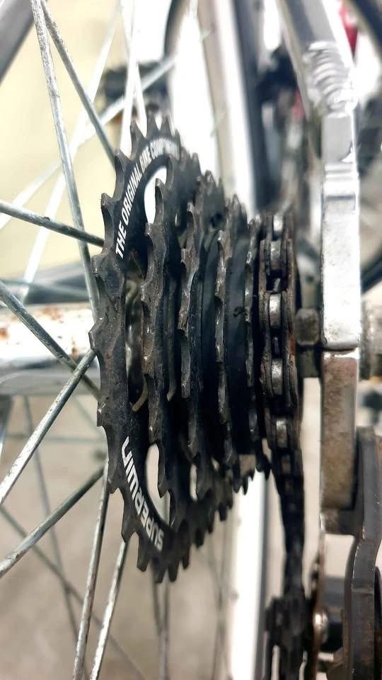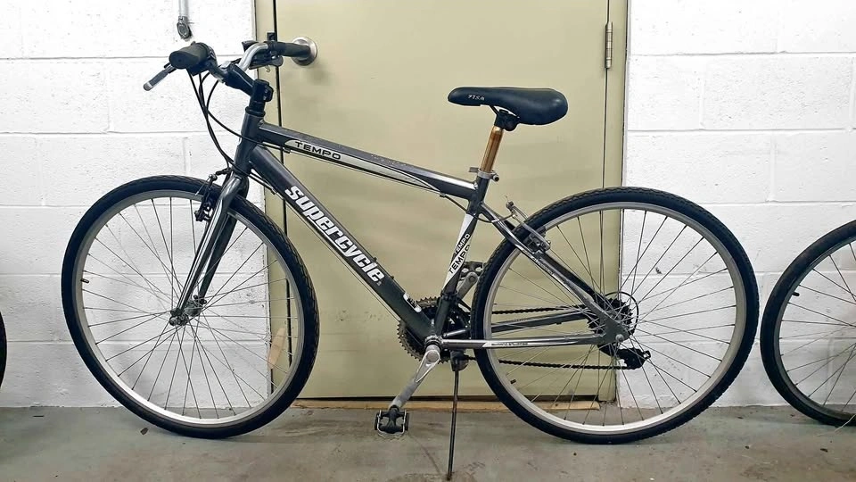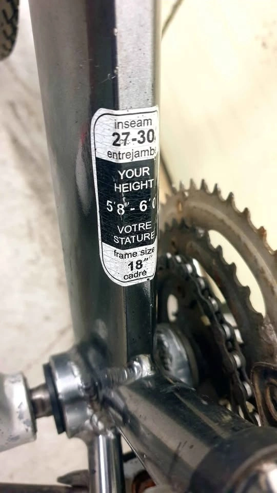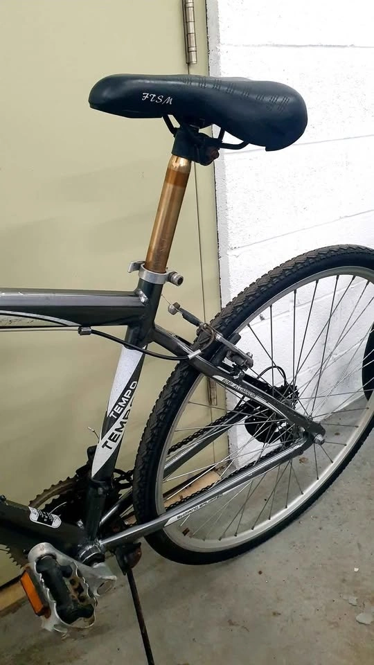 Aluminum frame, 18 speeds, Gunmetal Grey color. Rides well and brakes work. Seat tube is golden/copper colour; it is not rusted. Take it away to enjoy the great weather! Cash only. Pick up in Downtown Toronto.
