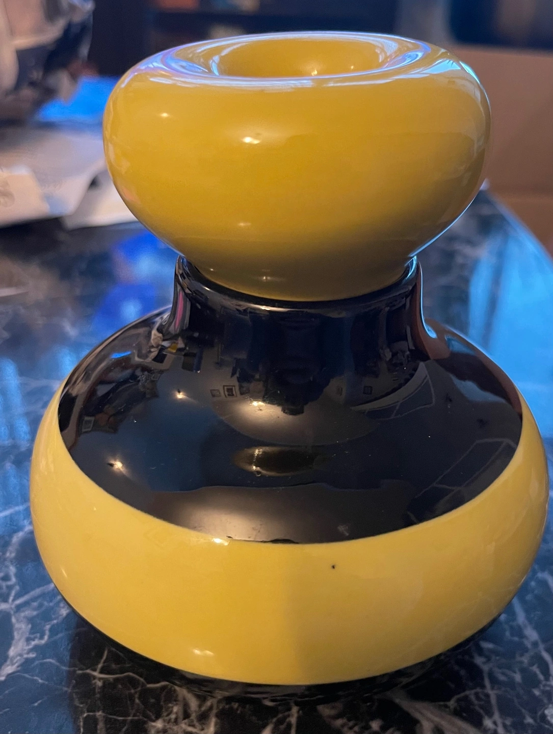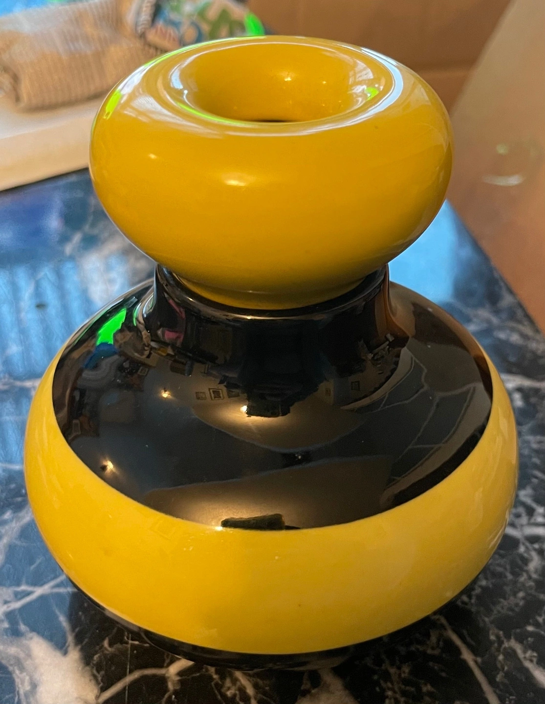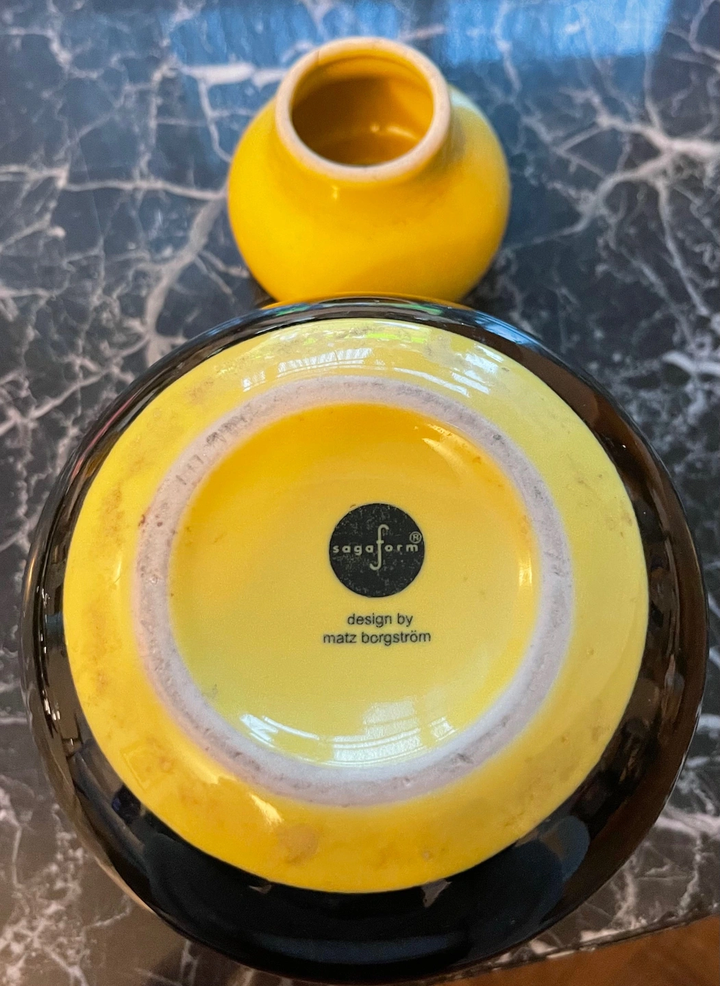 Beautiful designer jar by famous Swedish designer Matz Borgström for Sagaform. Features a striking yellow and black colour scheme with a high-gloss finish.